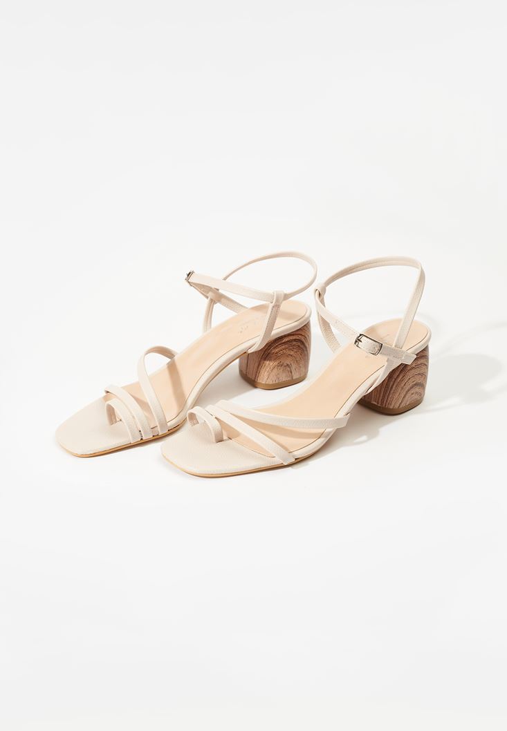 • Bayan Bej Bant Detaylı Topuklu Ayakkabı