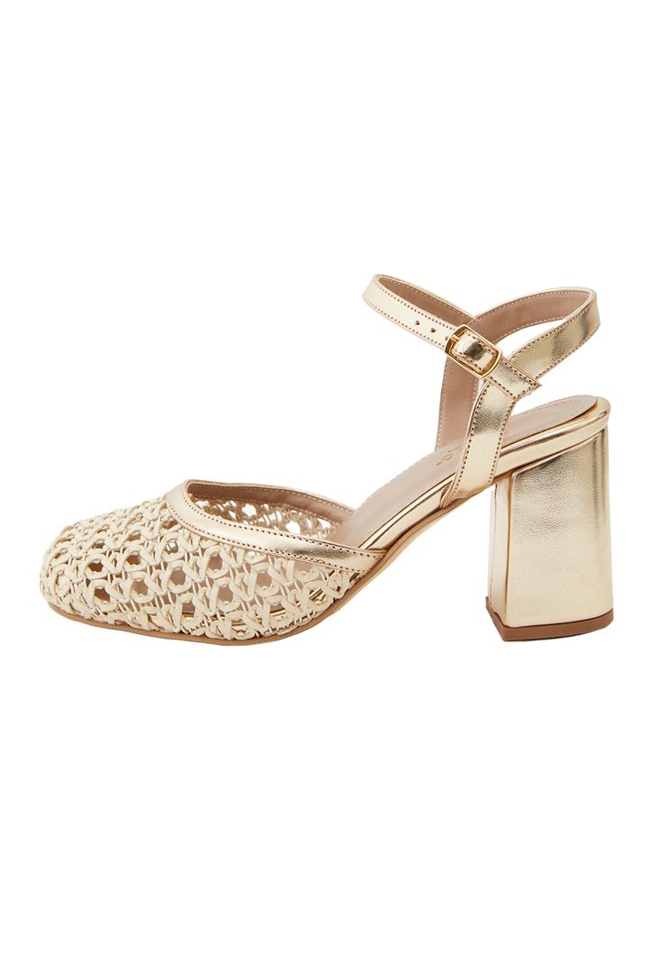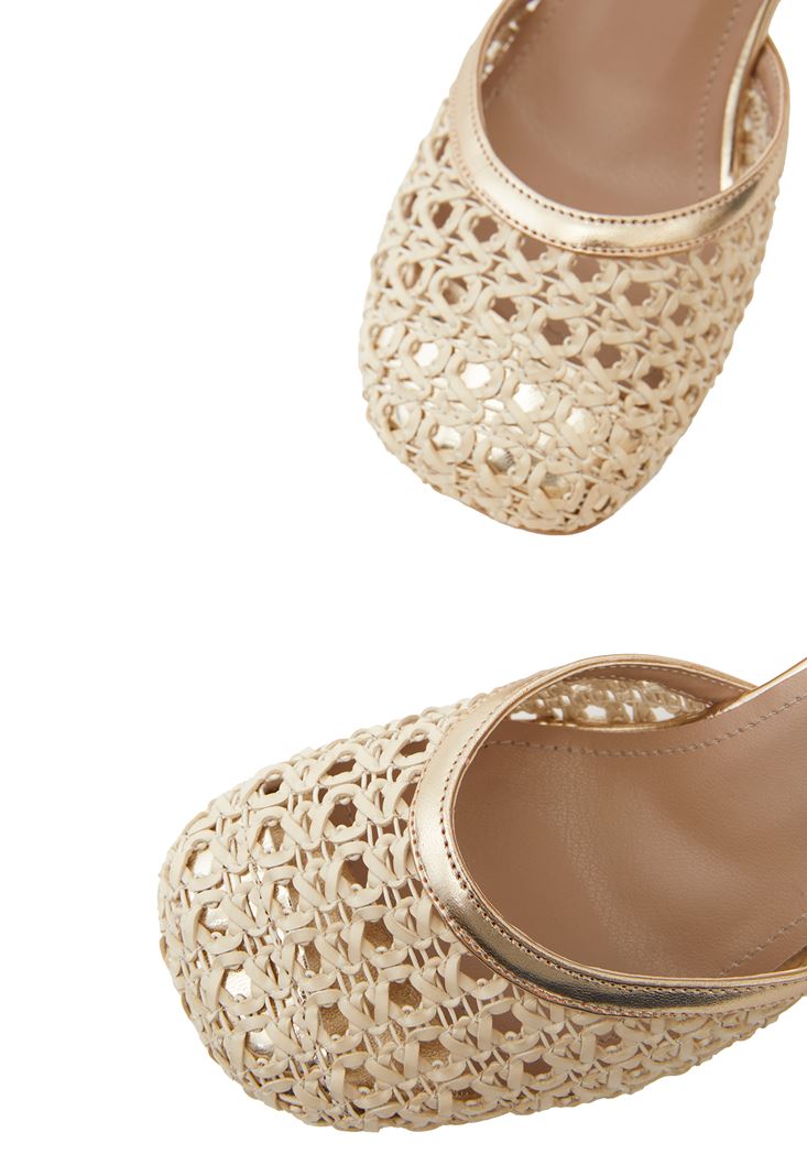 • Bayan Krem Bant Detaylı Topuklu Ayakkabı