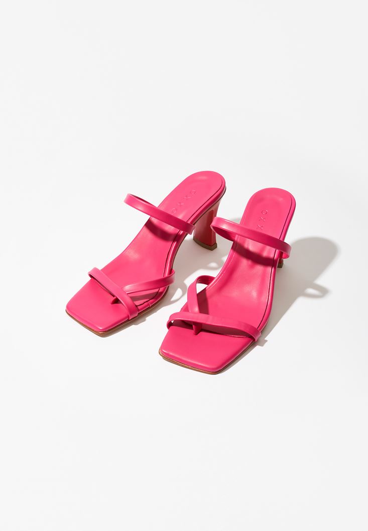 Pembe Bant Detaylı Topuklu Terlik
