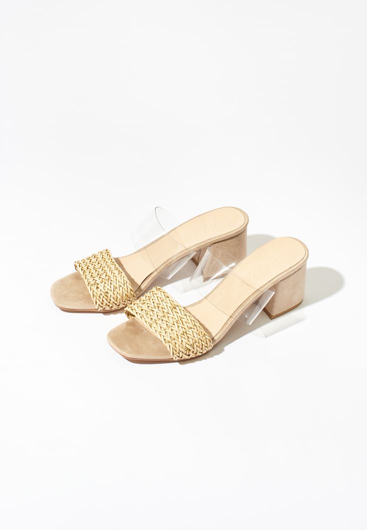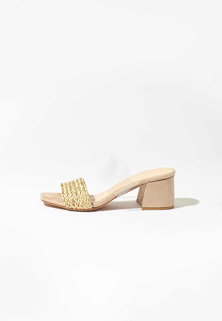 Bej Bant Detaylı Topuklu Terlik