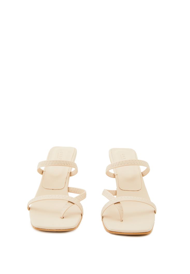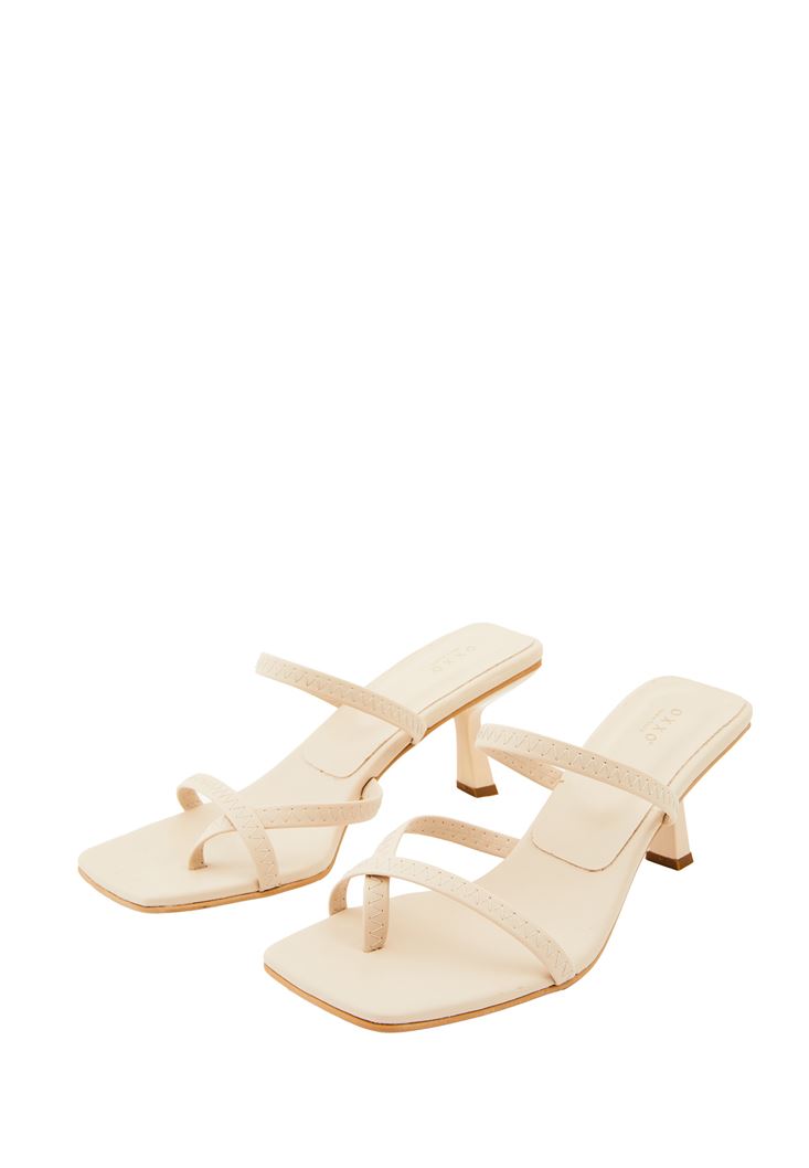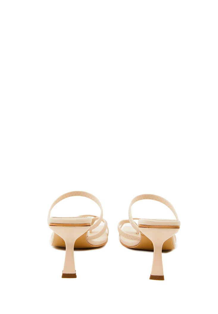 Bej Bant Detaylı Topuklu Terlik