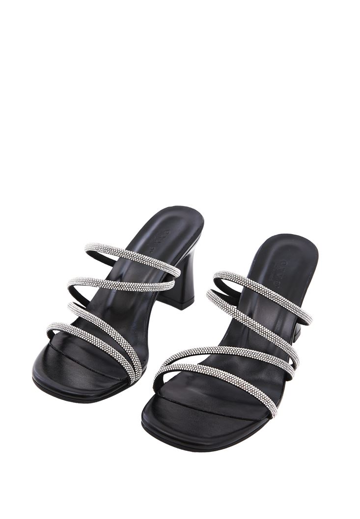 • Bayan Siyah Bant Detaylı Topuklu Terlik