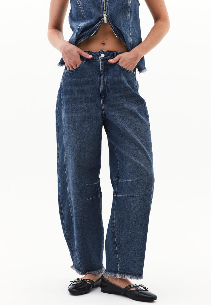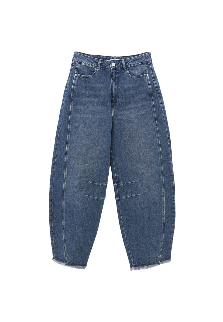 • Bayan Mavi Barrel-Fit Denim Pantolon