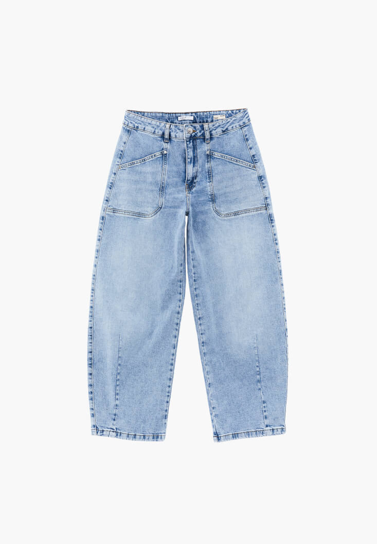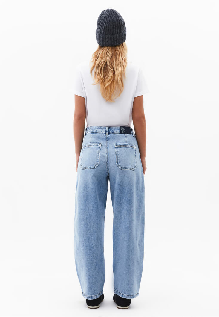 • Bayan Mavi Barrel-Fit Denim Pantolon