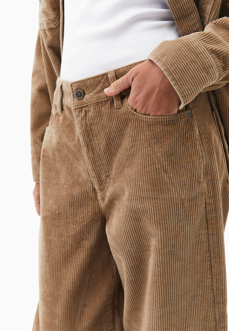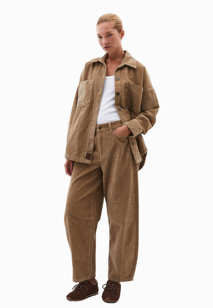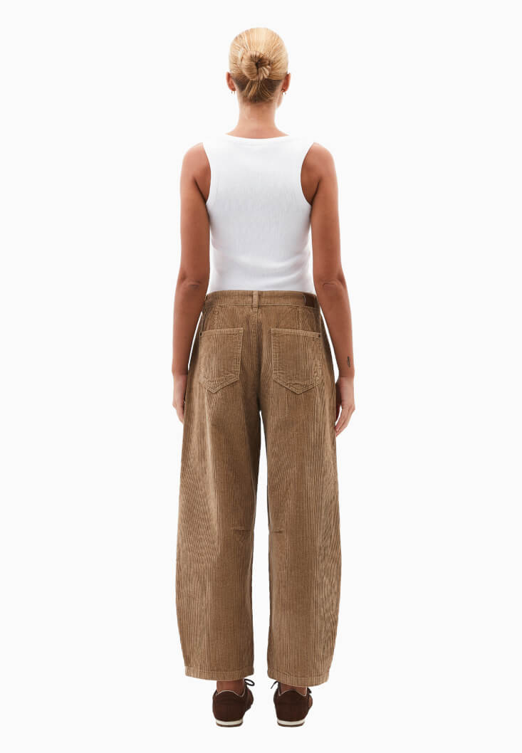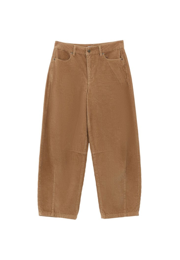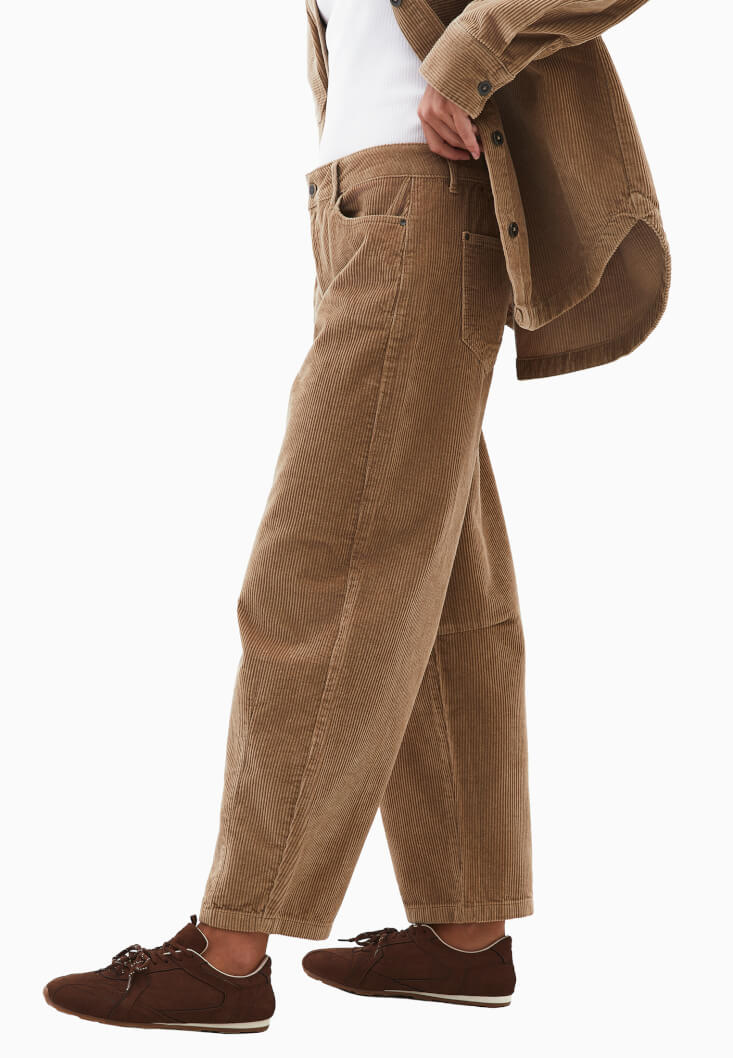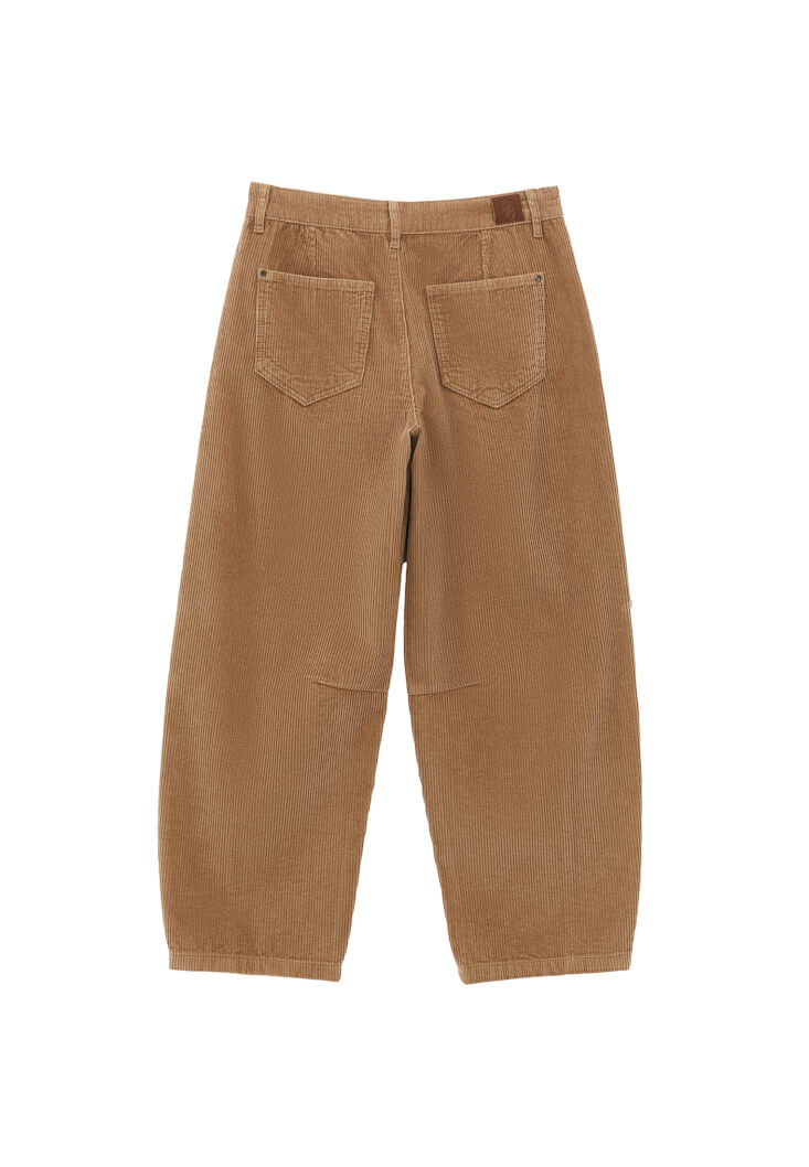 • Bayan Bej Barrel-Fit Kadife Pantolon