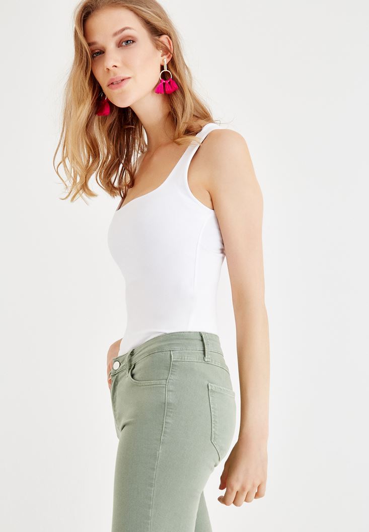• Bayan Beyaz Basic Kare Yaka Atlet