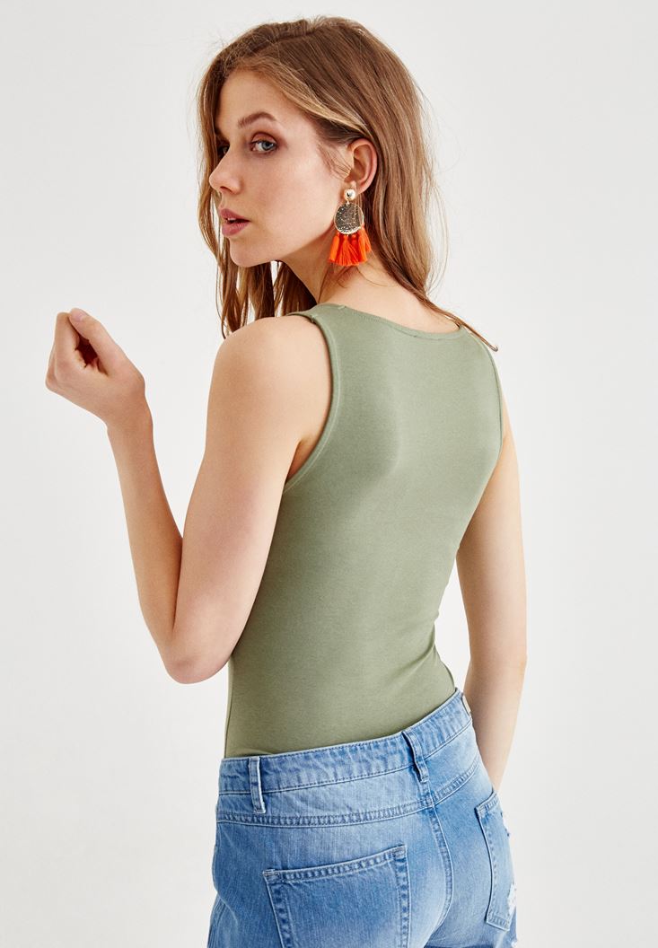 • Bayan Yeşil Basic Kare Yaka Atlet