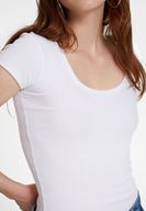 Basic U Yaka Tisört modeli simetrik sikligi modern çizgilerle ön plana çikaran tisört modelleri arasinda yer aliyor. U yaka kesimi ile oldukça zarif bir boyun dekoltesini ön plana çikaran tisört modelinin sirt kesiminde de yaka kesimi ile simetrik olan bir dekolte bulunuyor. Spor kombinlerin vazgeçilmezleri arasinda yer alan U yaka kesim tisört modelinde kullanilan pamuk doku ise tasarimin konforunu sagliyor. Pamuk dokunun nefes alan yapisi, nem emiciligi ve yumusakligi uzun süreli kullanimlarda bile konforlu hissetmenize yardimci olacak. Jean, sort, etek ya da tayt gibi farkli parçalarla birlikte tamamlayabileceginiz tisört modeli ile spor sikligi en dogal ve zarif haliyle elde edeceksiniz. OXXO’nun sadelikle konforu siklikla basarili bir sekilde bütünlestirdigi tasarimlardan birisi olan tisört modelini her zaman severek tercih edeceksiniz.