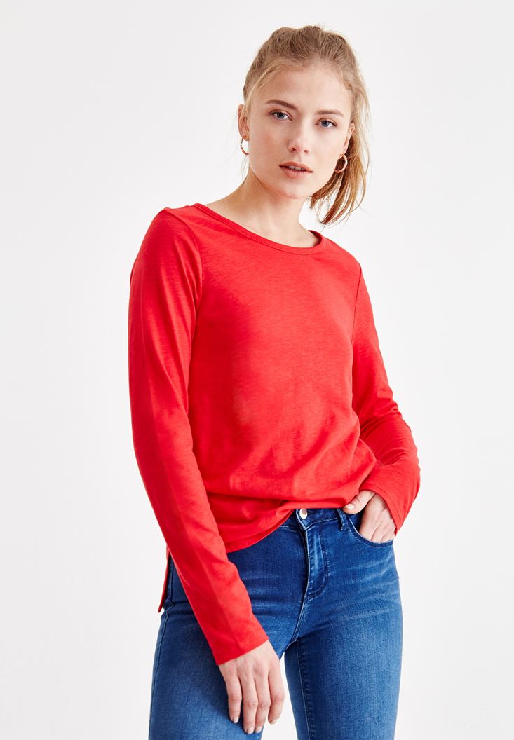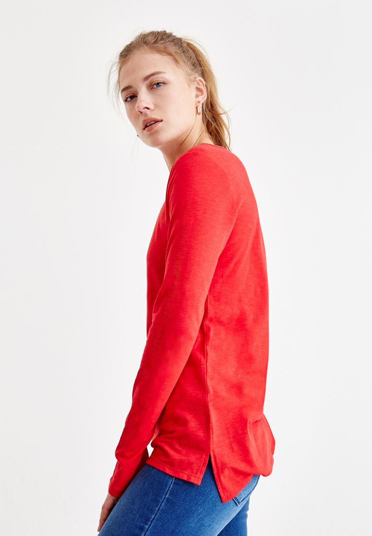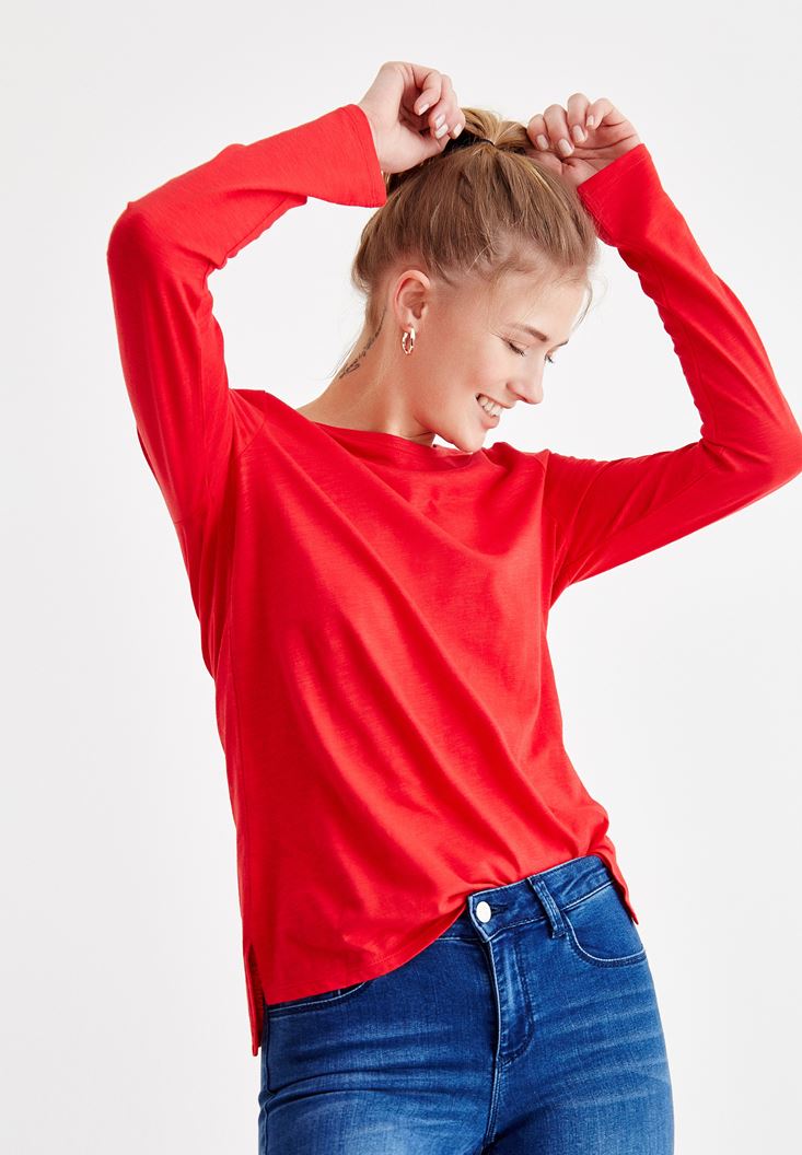 • Bayan Kırmızı Basic Uzun Kollu Tişört