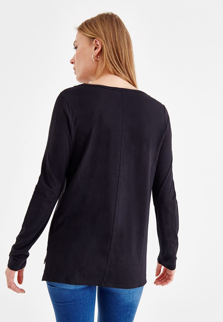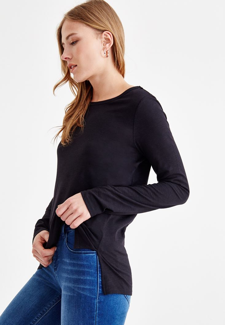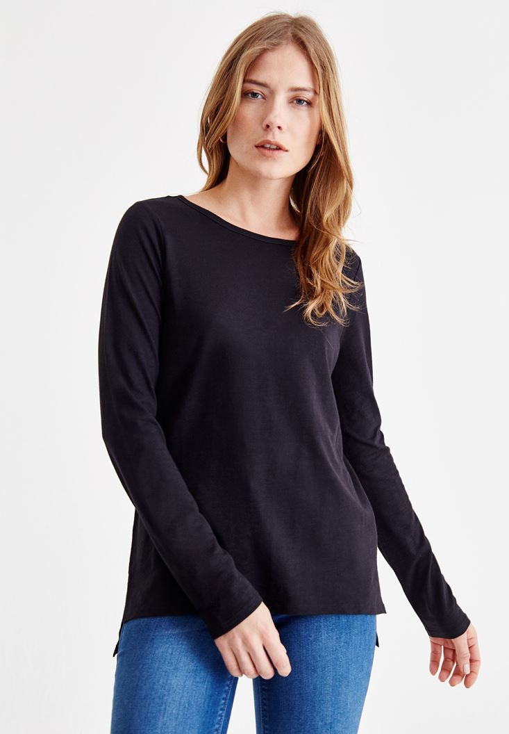 • Bayan Siyah Basic Uzun Kollu Tişört