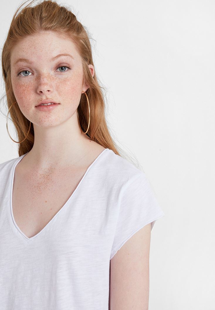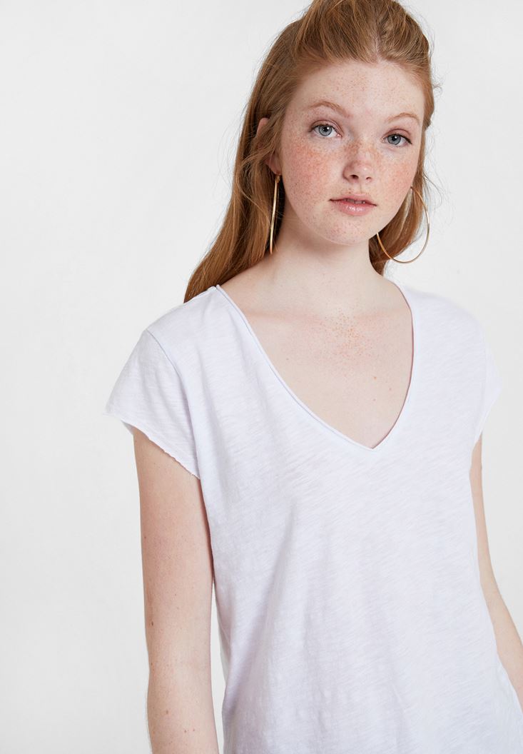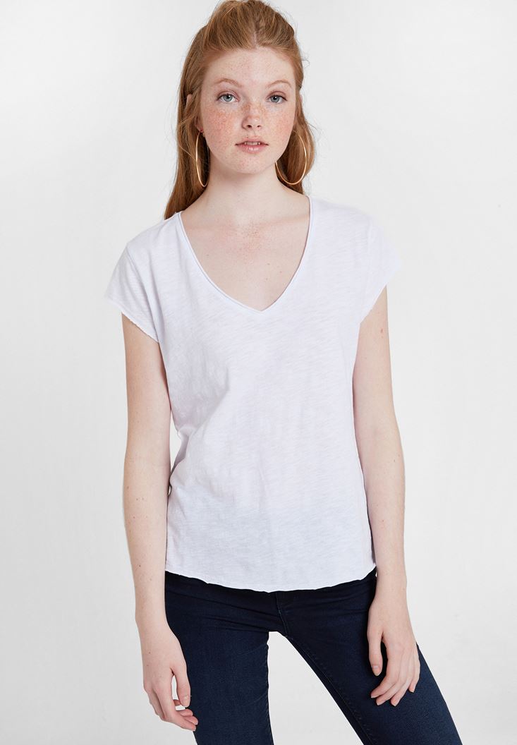 • Bayan Beyaz Basic V Yaka Kısa Kollu Tişört
