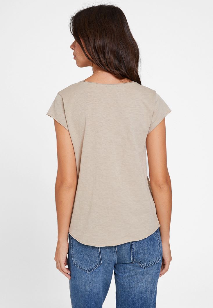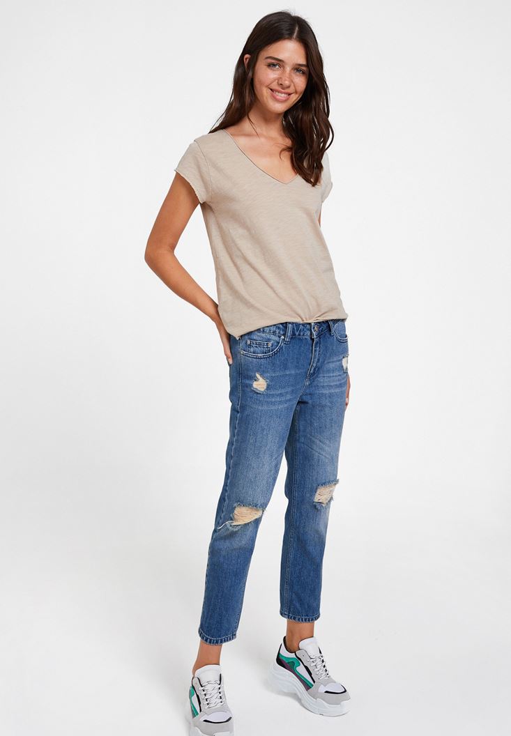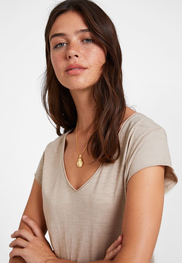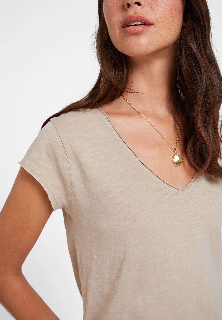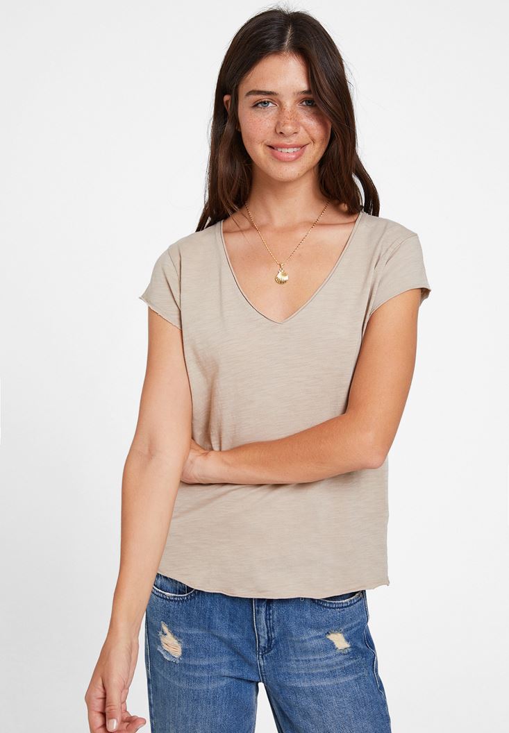 • Bayan Krem Basic V Yaka Kısa Kollu Tişört