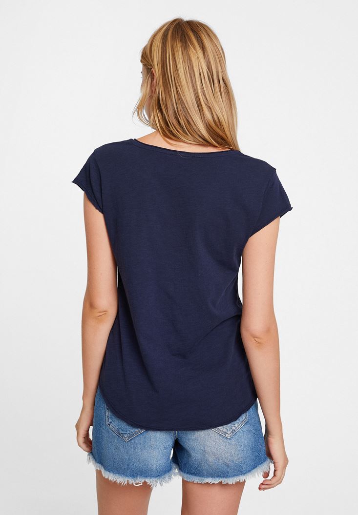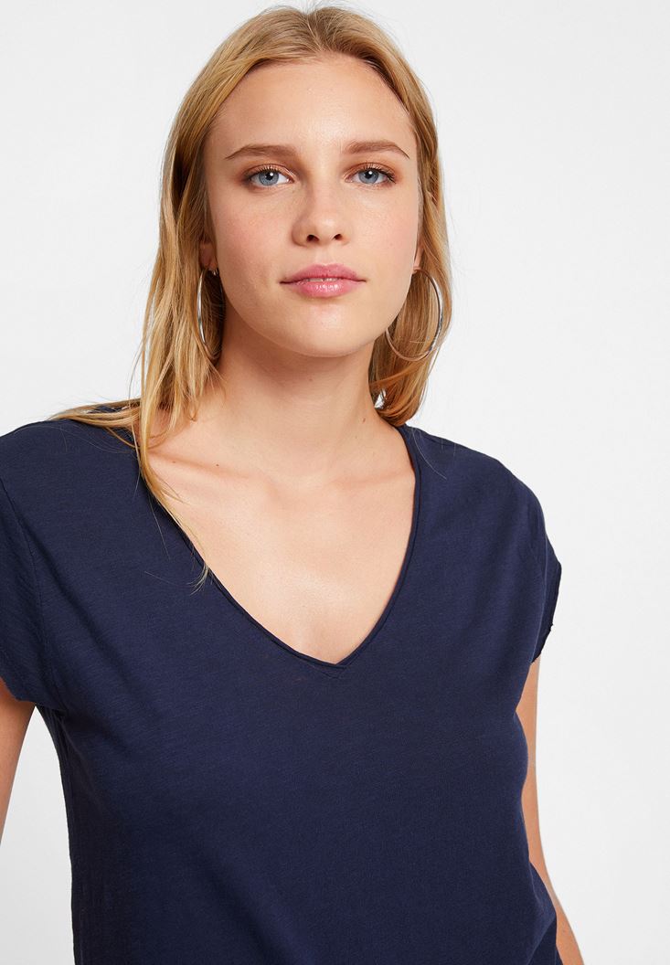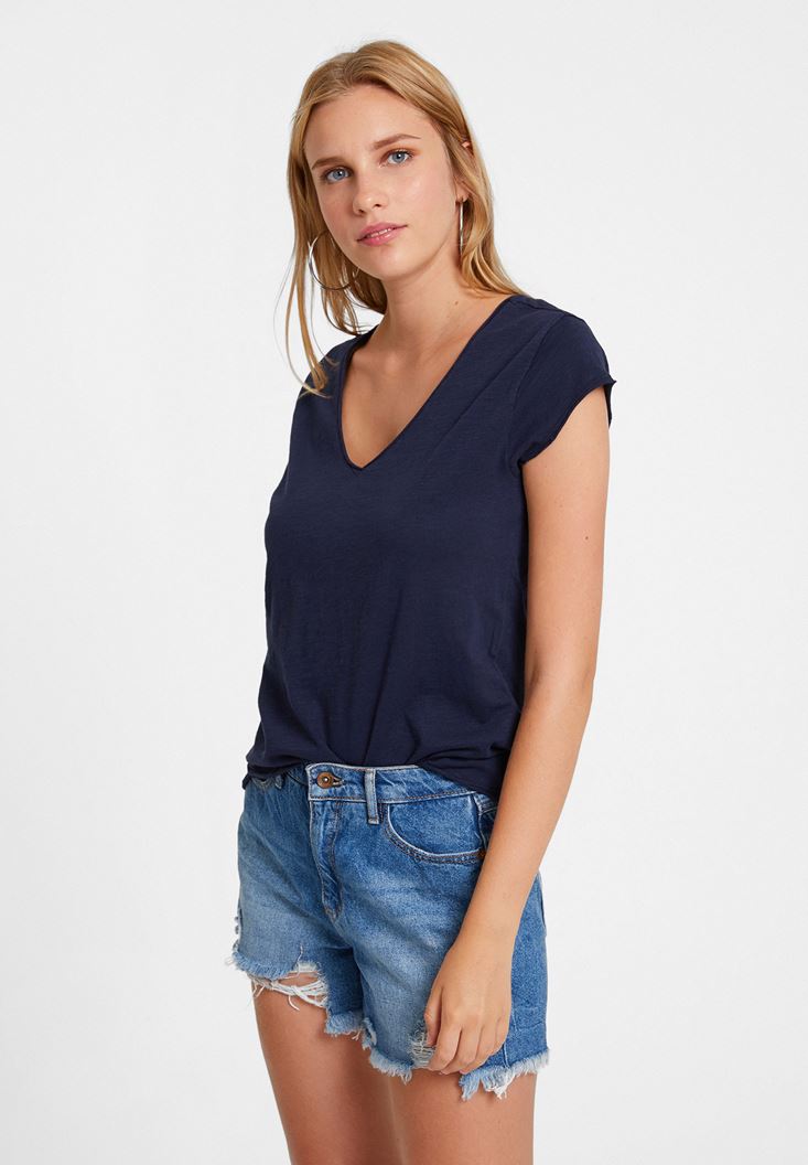 Lacivert Basic V Yaka Kısa Kollu Tişört