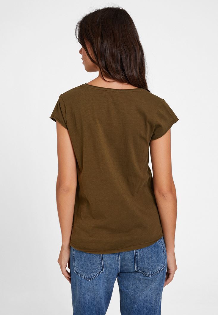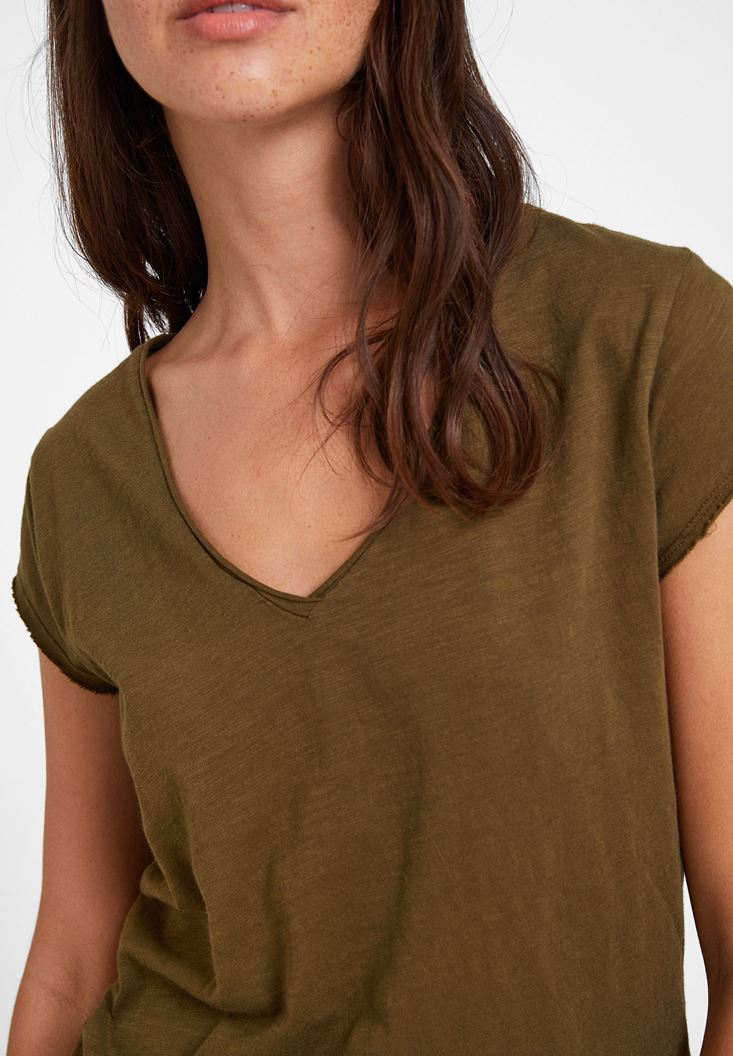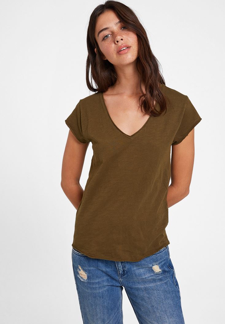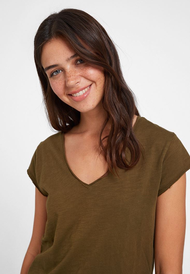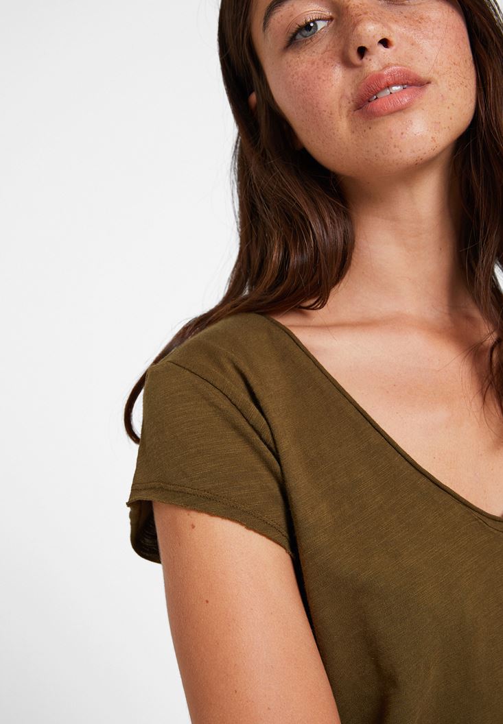 Yeşil Basic V Yaka Kısa Kollu Tişört