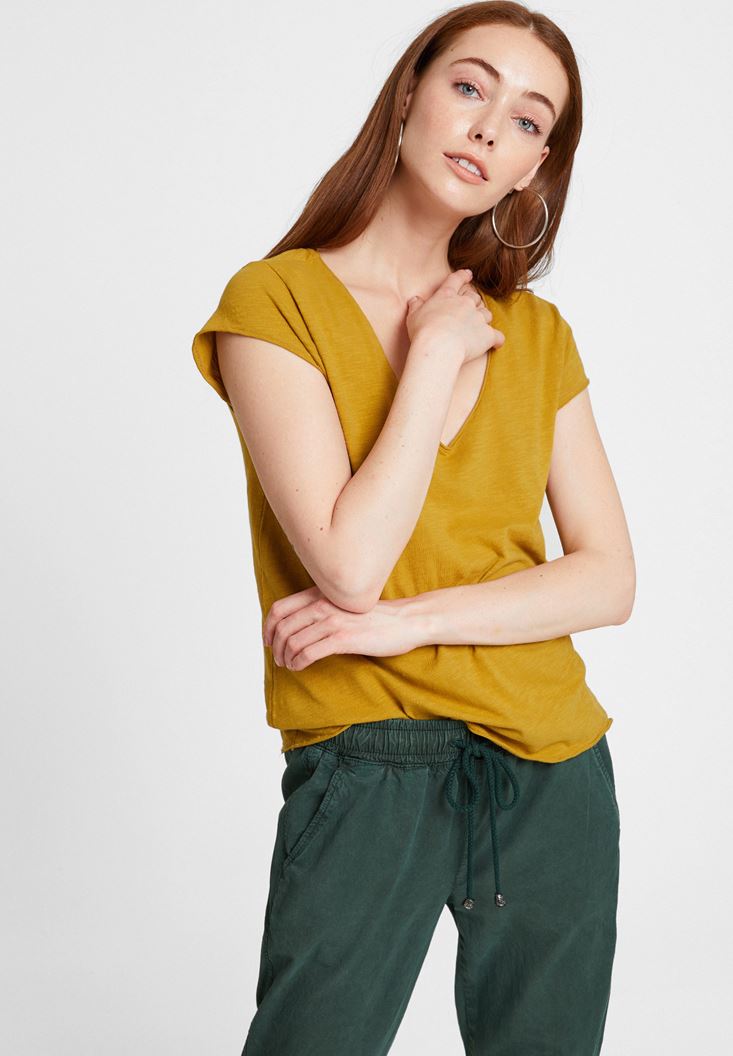 • Bayan Yeşil Basic V Yaka Kısa Kollu Tişört