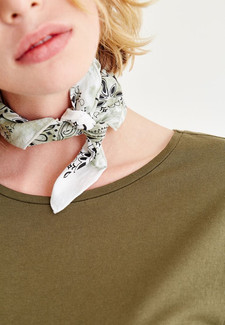 Kombinlerinize hareket katacak baski detayli fulari farkli amaçlarla kullanabilirsiniz. Boyun bagi olarak kullanabileceginiz fular modelini isterseniz bandana ya da çantalariniza hareket katacak bir detay olarak da tercih edebilirsiniz. OXXO yaz enerjisini etnik detaylar ve dogadan aldigi ilham ile yansitirken kendiniz için özel bir tarz yaratabilirsiniz. %100 pamuk dokusu ile yüksek nem emme oranina sahip baskili detayli fular modeli kullanimda konforu ve sikligi bir arada elde etmenizi saglayacak. Boyun ve sirt dekoltesine sahip bluz modelleri ya da gömleklerle birlikte kombinleyebileceginiz fular modeli sade sikliginiza hareket katacak. Kisa fular modeli olarak rahat kullanima sahip olan ürün sicak günlerde rahatlikla tercih edebileceginiz bir aksesuar.