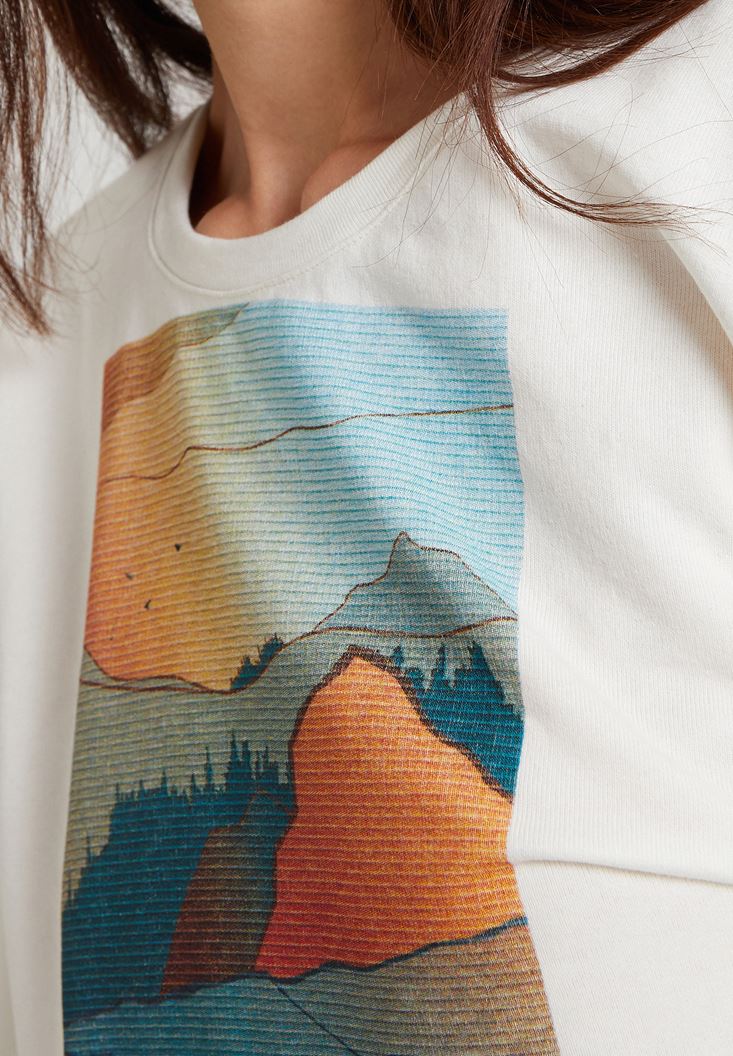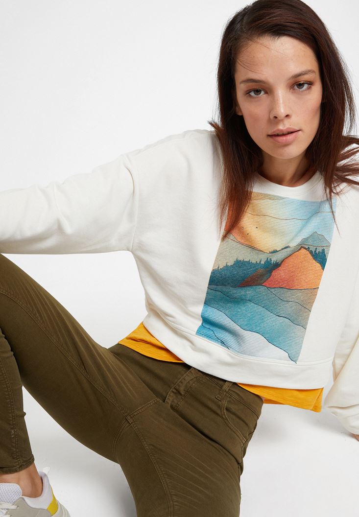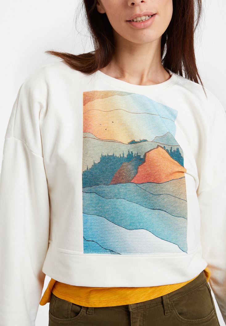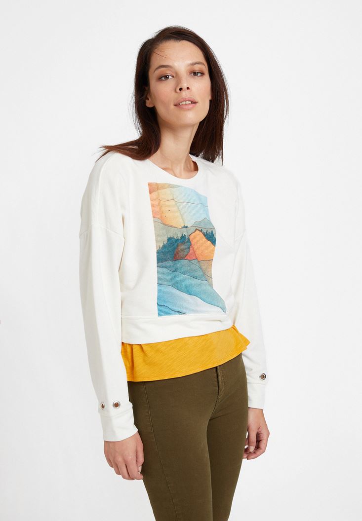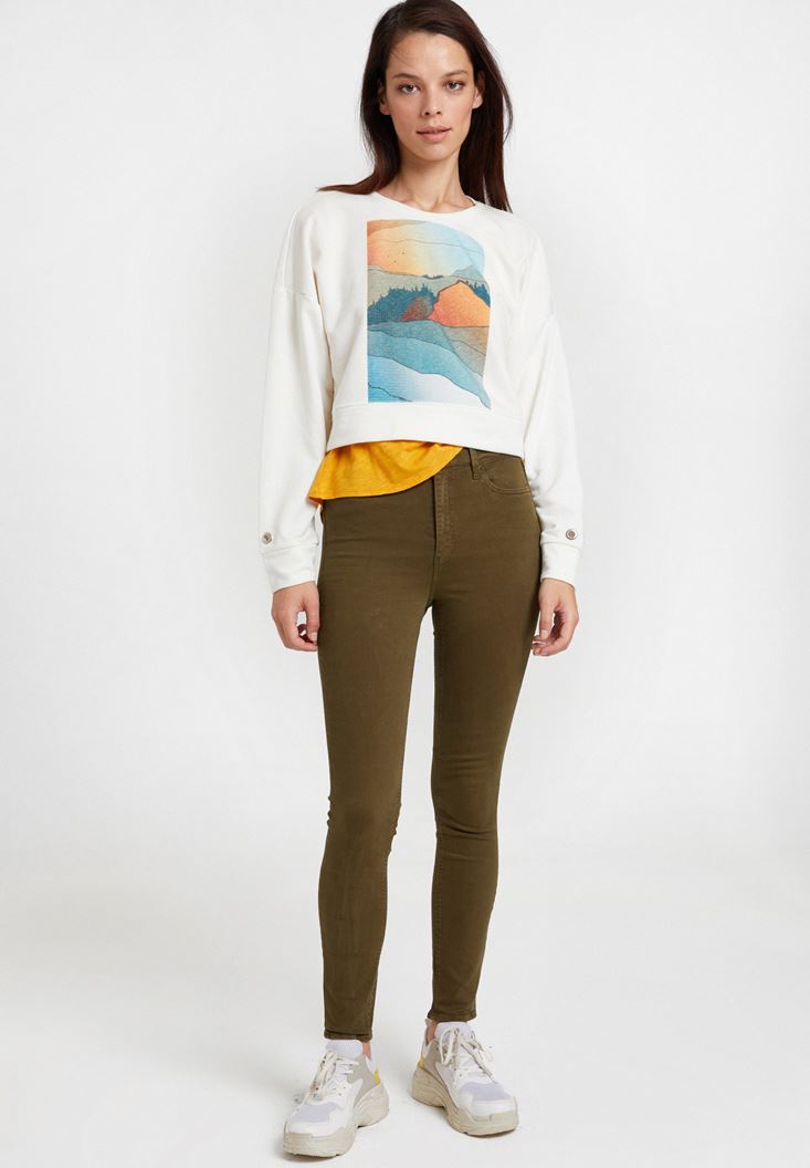 • Bayan Krem Baskı Detaylı Sweatshirt