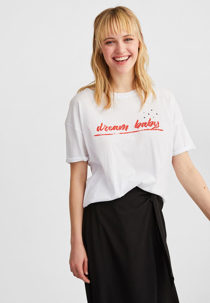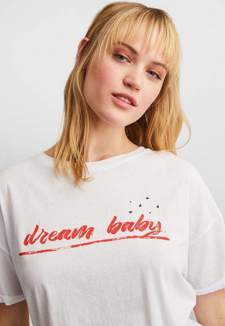 • Bayan Beyaz Baskılı Boyfriend Tişört