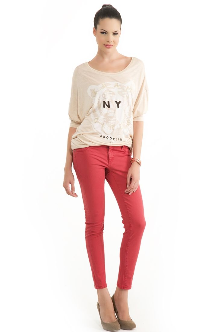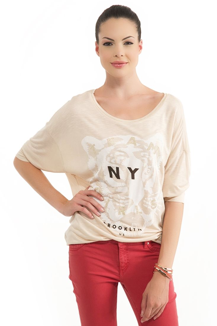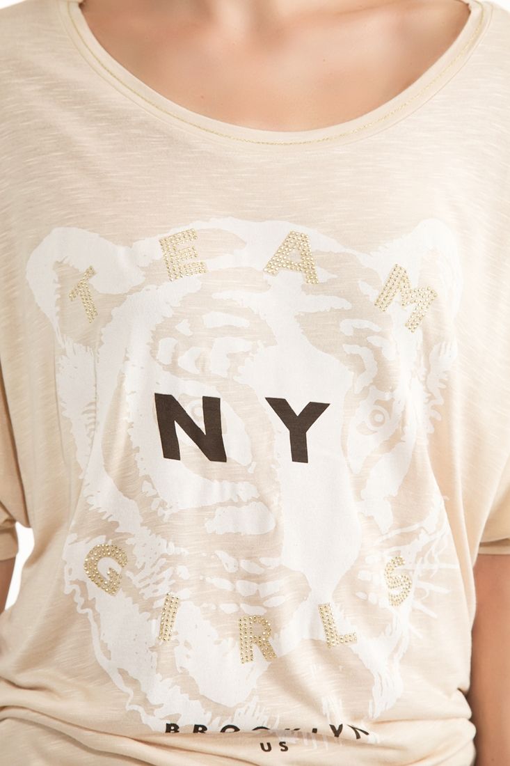 • Bayan Krem Baskılı Tişört