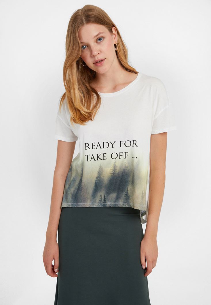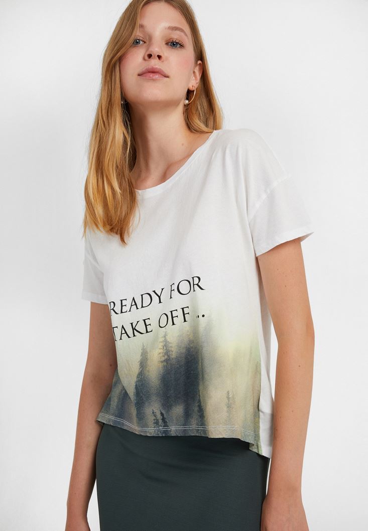 Krem Baskılı Tişört