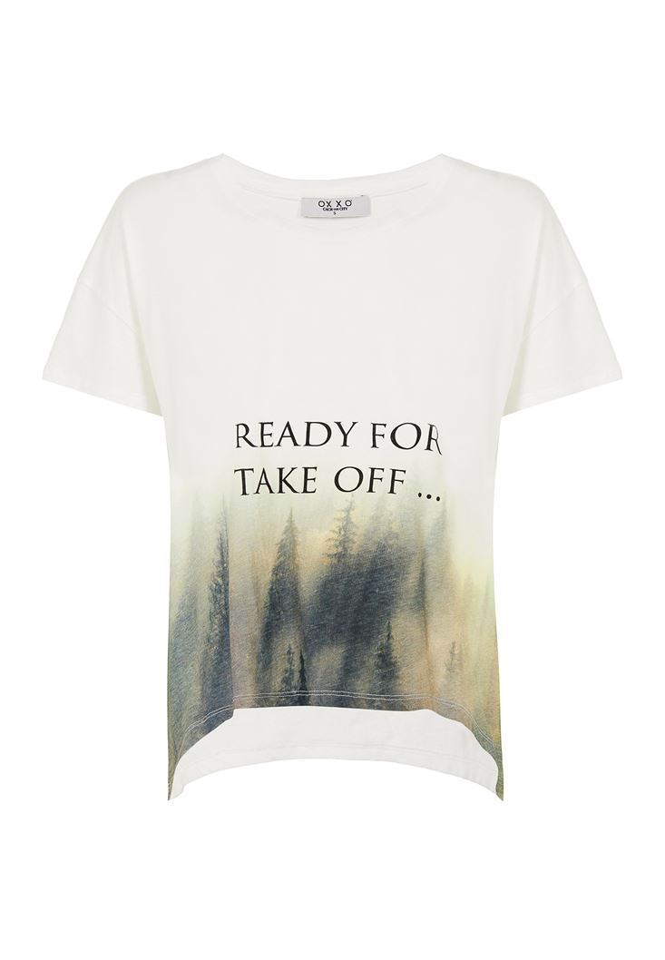 • Bayan Krem Baskılı Tişört