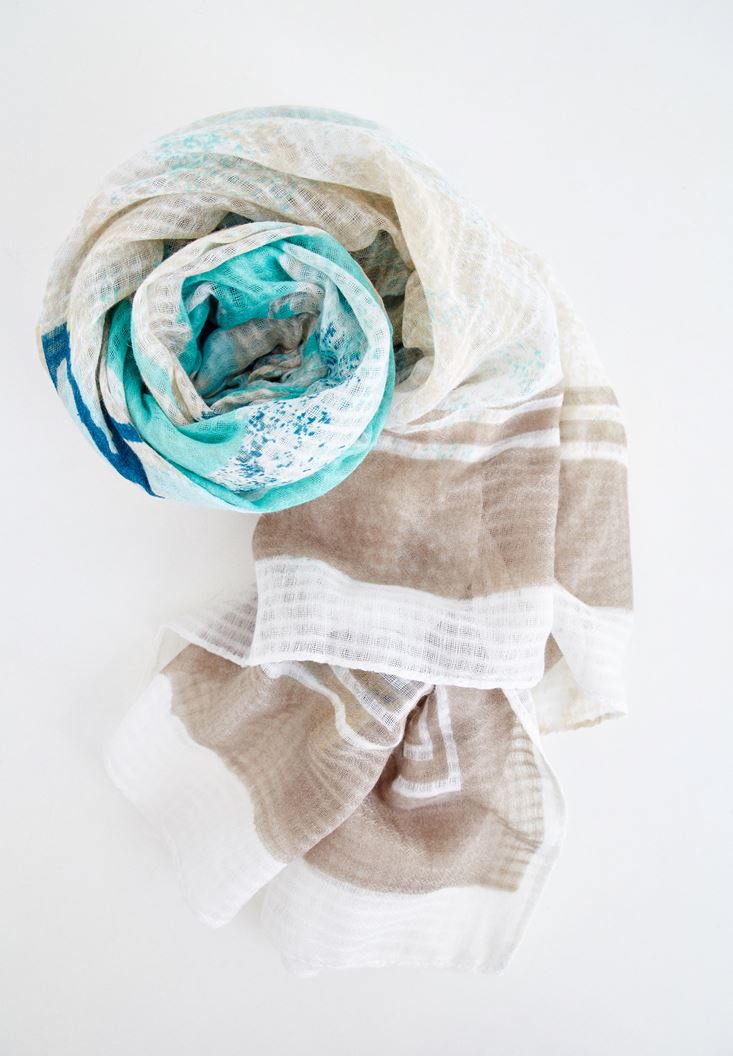 • Bayan Çok Renkli Baskılı Uzun Şal