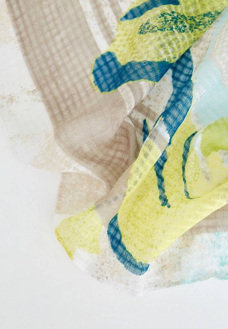 Çok Renkli Baskılı Uzun Şal