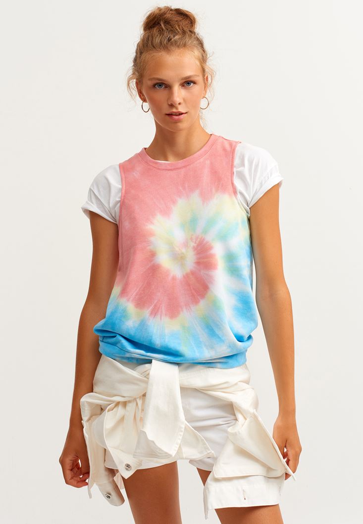 • Bayan Çok Renkli Batik Desenli Tank Top