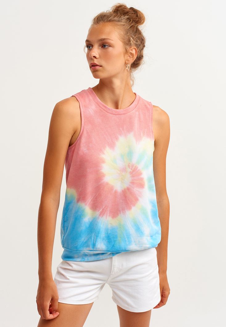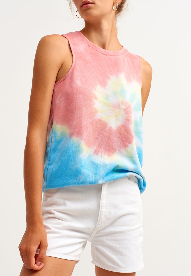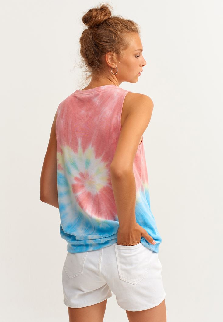 Batik Desenli Tank Top modeli. Nostaljik rüzgarlar estiren batik yıkamalı bu parça ile kendini güneşin ritmine bırak! Tank top modelinin bu rengarenk görünümünü jeanlerle ve denim ceketlerle buluşturarak akşam katılacağın etkinliklere hazır olabilirsin. :) Ayrıca gününü neşelendirecek bu parçayı güneş gözlüğünde bir araya getirerek havalı duruşun keyfini çıkar!