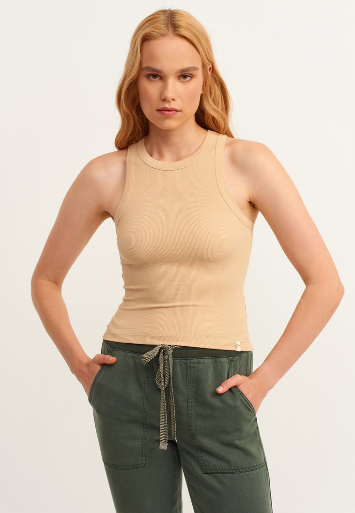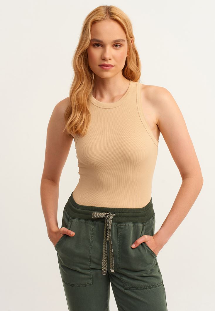 Halter-Neck Tank Top ve Yumuşak Dokulu Jogger Pantolon Kombini