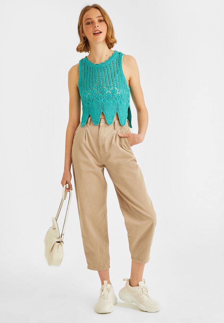 Ajurlu Kısa Triko modeli, delikli örgü detayları ve pamuk içerikli hoş dokusu ile Oxxo'da karşınıza çıkıyor. Kadın triko modeli, farklı görünümü ve dikkat çeken örgü detayları ile yeni sezona hareket katıyor. Kombinlerinize dahil edebileceğiniz kısa triko modelini braletlerle ve yüksek belli skinnylerle birlikte rahatlıkla kullanabilirsiniz. kadın triko modeli ile tarzınızı en iyi şekilde vurgulamak için sallantılı küpelerden ve topuklu ayakkabılardan yardım alabilirsiniz. Oxxo'nun hoş detaylarla ve çok sevilen örme ayrıntılarıyla sizlere sunduğu kısa triko modelleri ile tarzınızı şekillendirebilirsiniz.