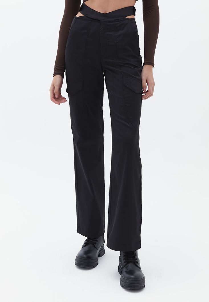 • Bayan Siyah Bel Detaylı Kargo Pantolon