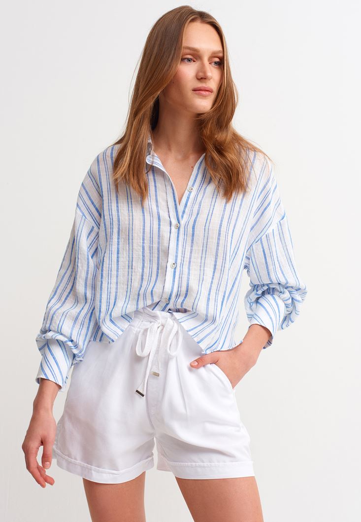 Beyaz Bel Detaylı Kısa Şort ( TENCEL™ )
