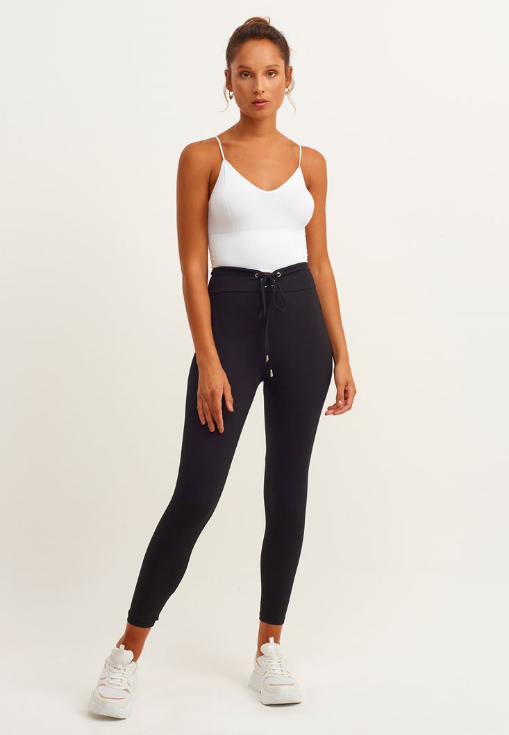 • Bayan Siyah Bel Detaylı Pamuklu Tayt
