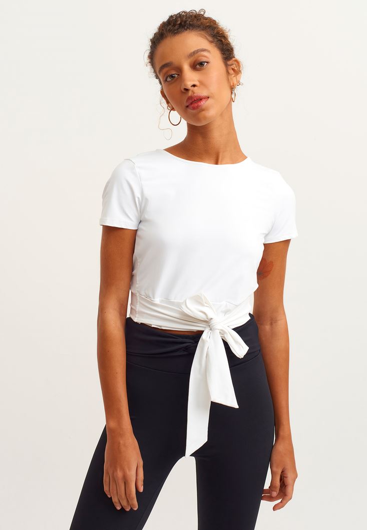 Bel Detaylı Tayt ve Crop Tişört Kombini