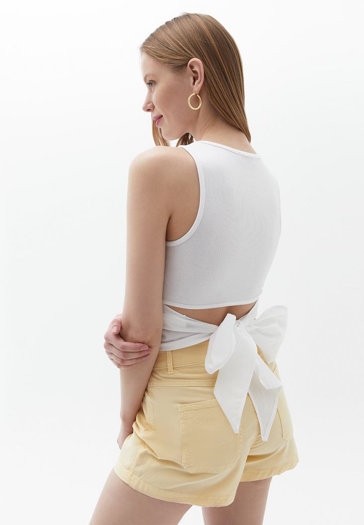 Beyaz Belden Bağlama Detaylı Atlet