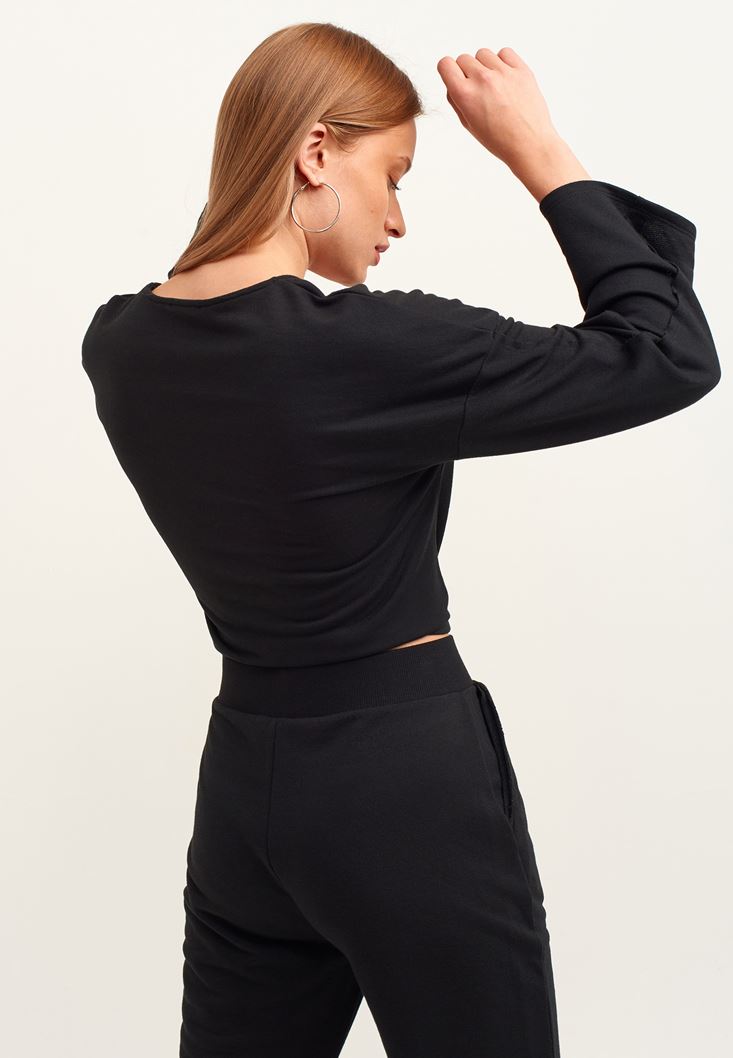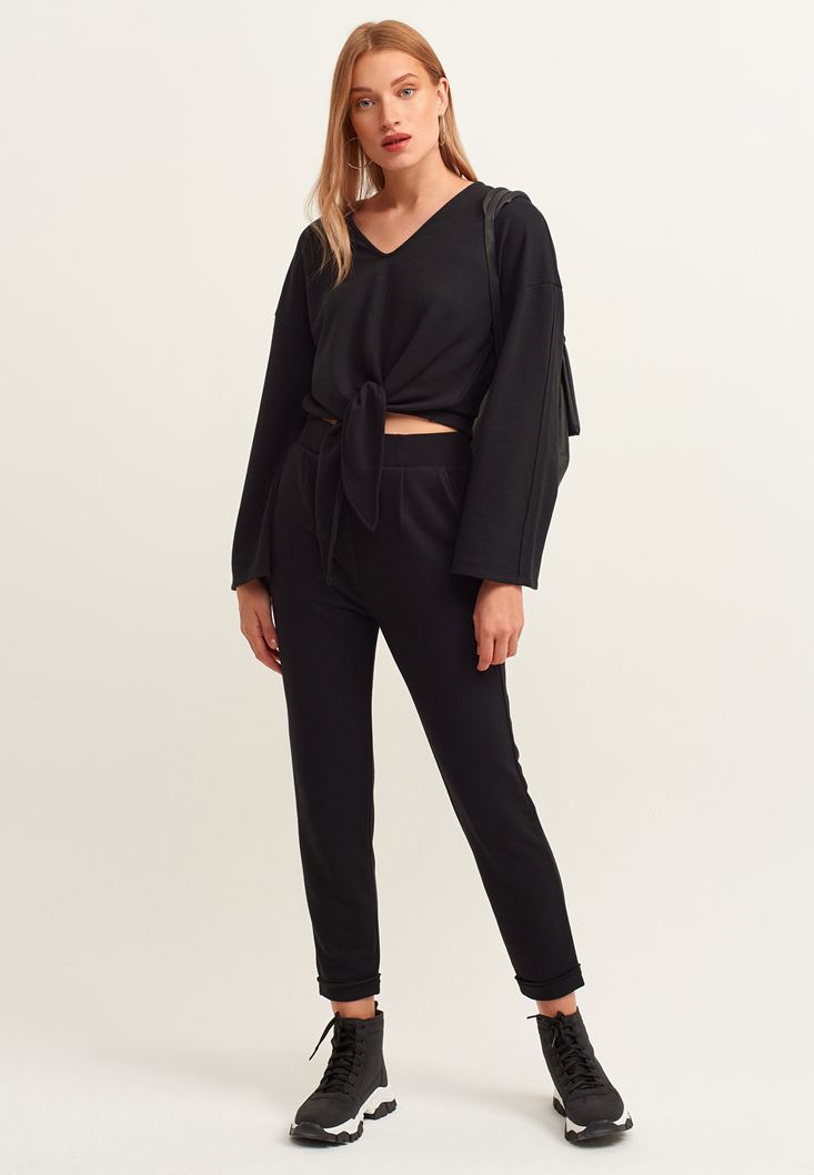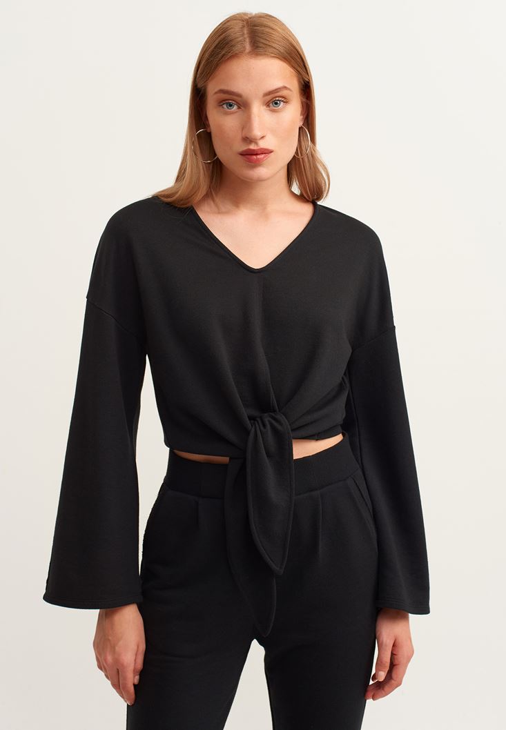 • Bayan Siyah Belden Bağlamalı Crop Sweat