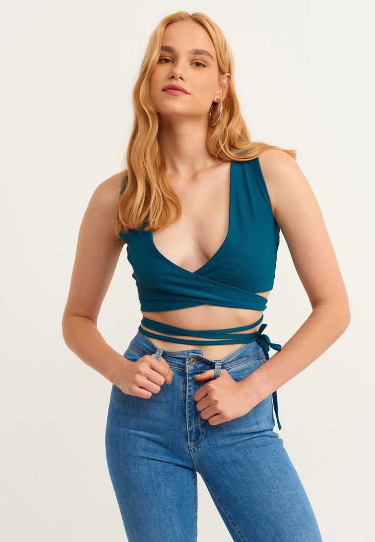 Oxxo Belden Bağlamalı V Yaka Crop Top 2131674208
