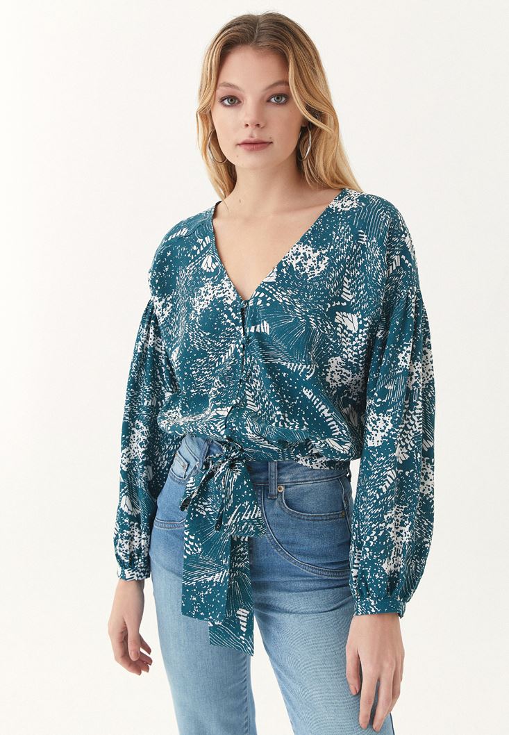 Beli Bağlamalı Bluz ve Denim Pantolon Kombini