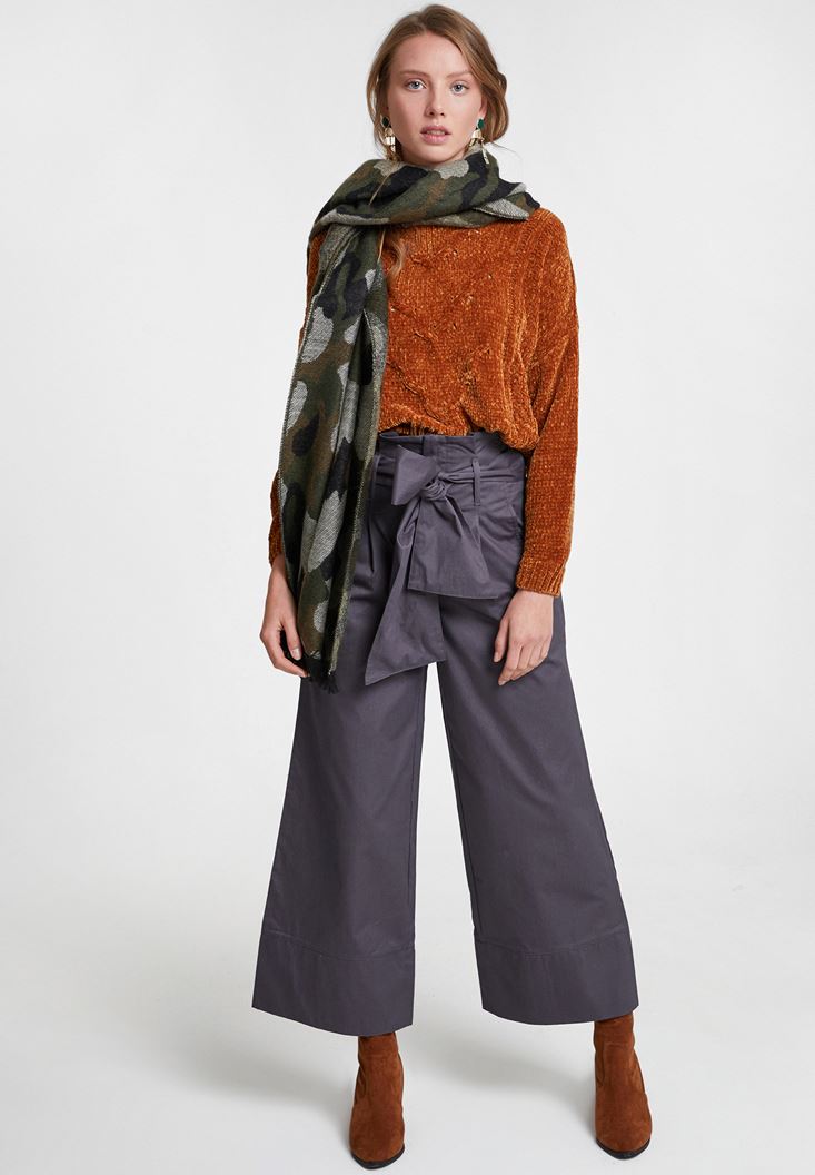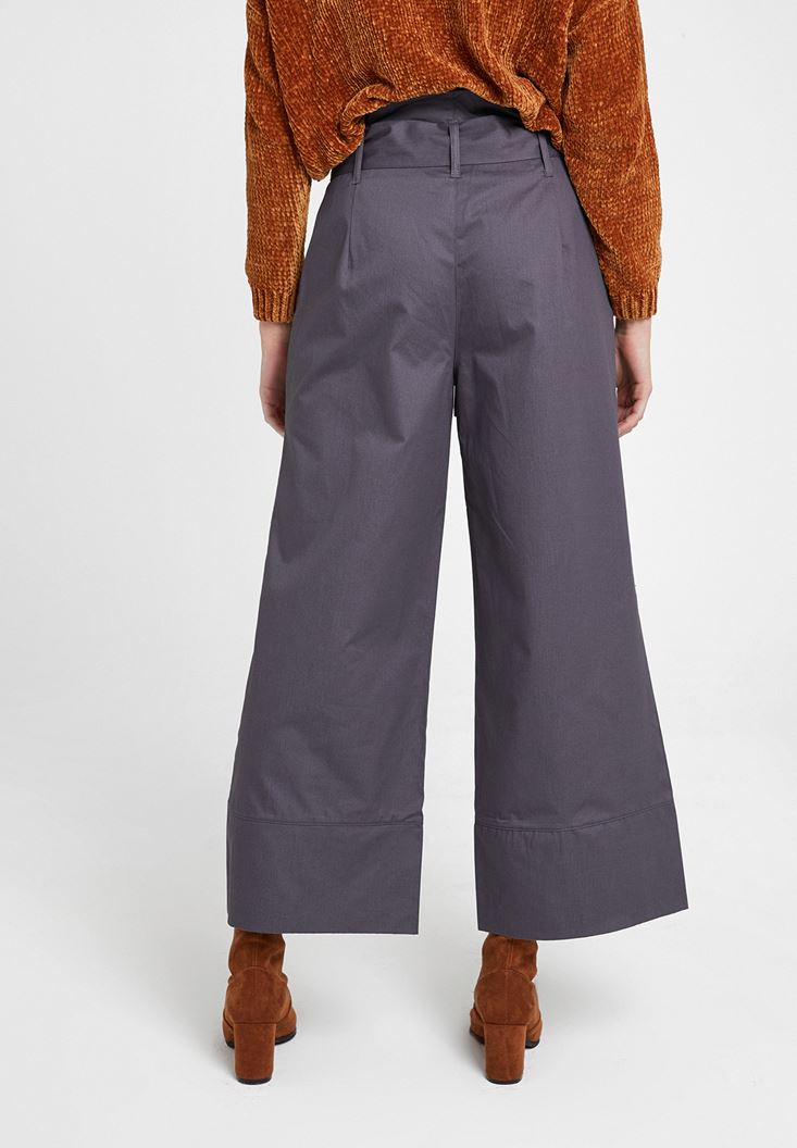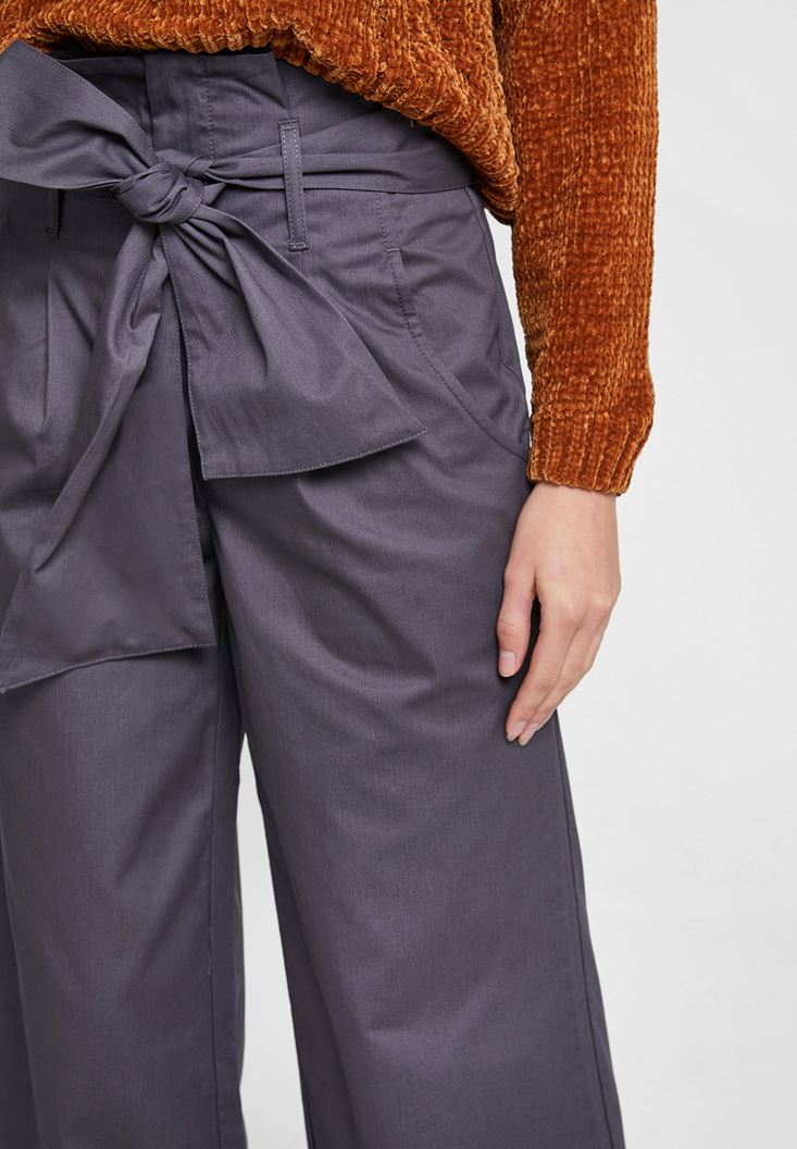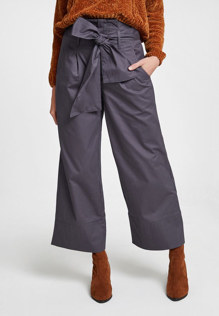 Gri Beli Bağlamalı Bol Pantolon