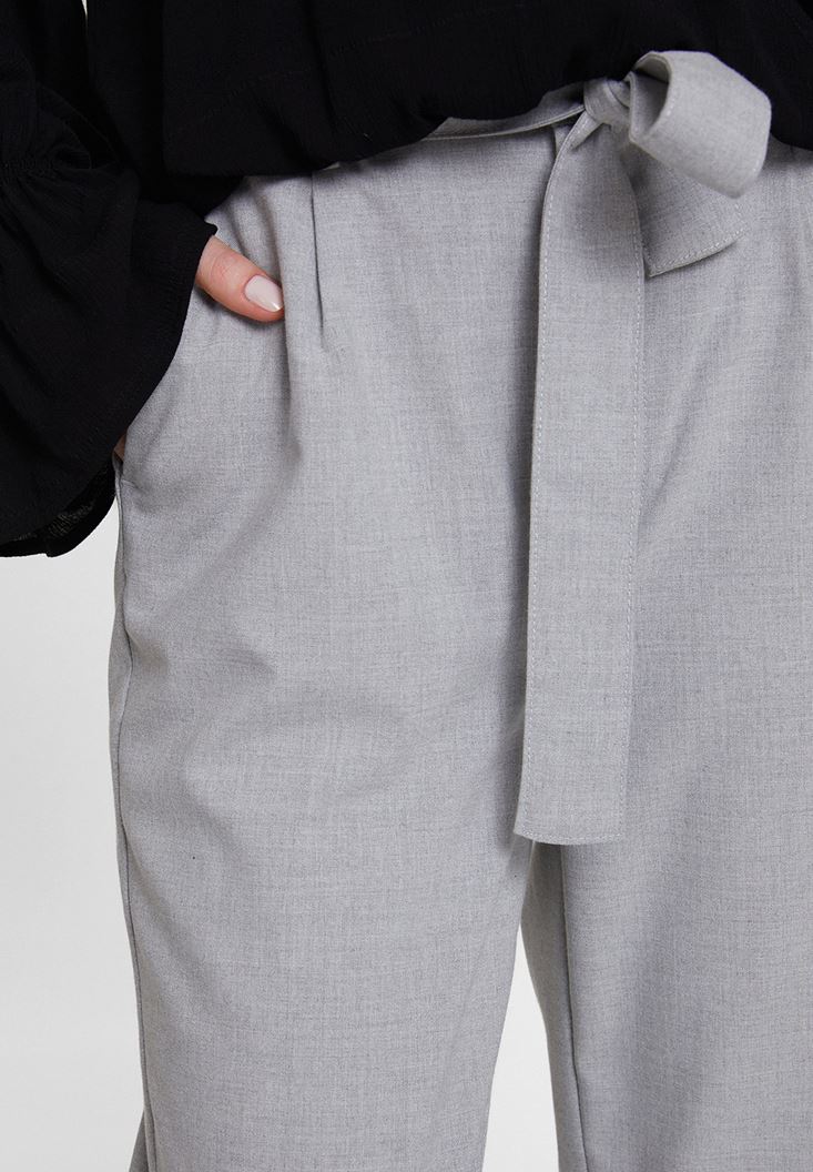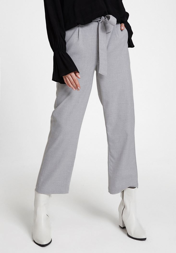Gri Beli Bağlamalı Cep Detaylı Bol Pantolon
