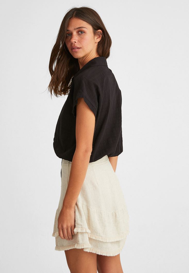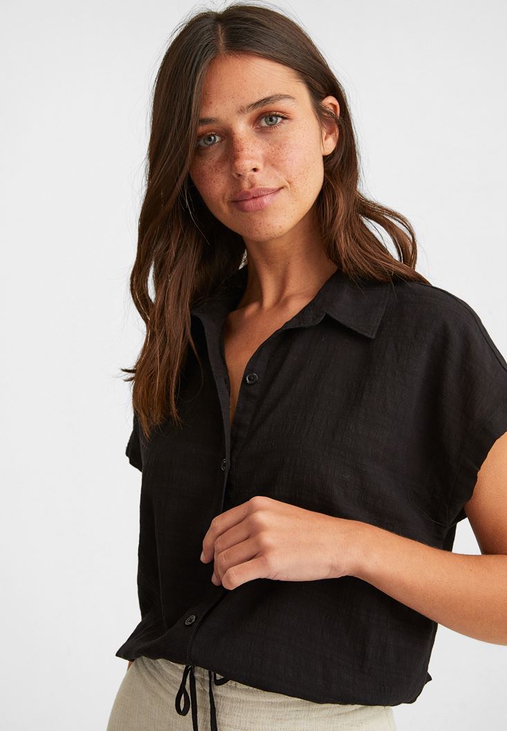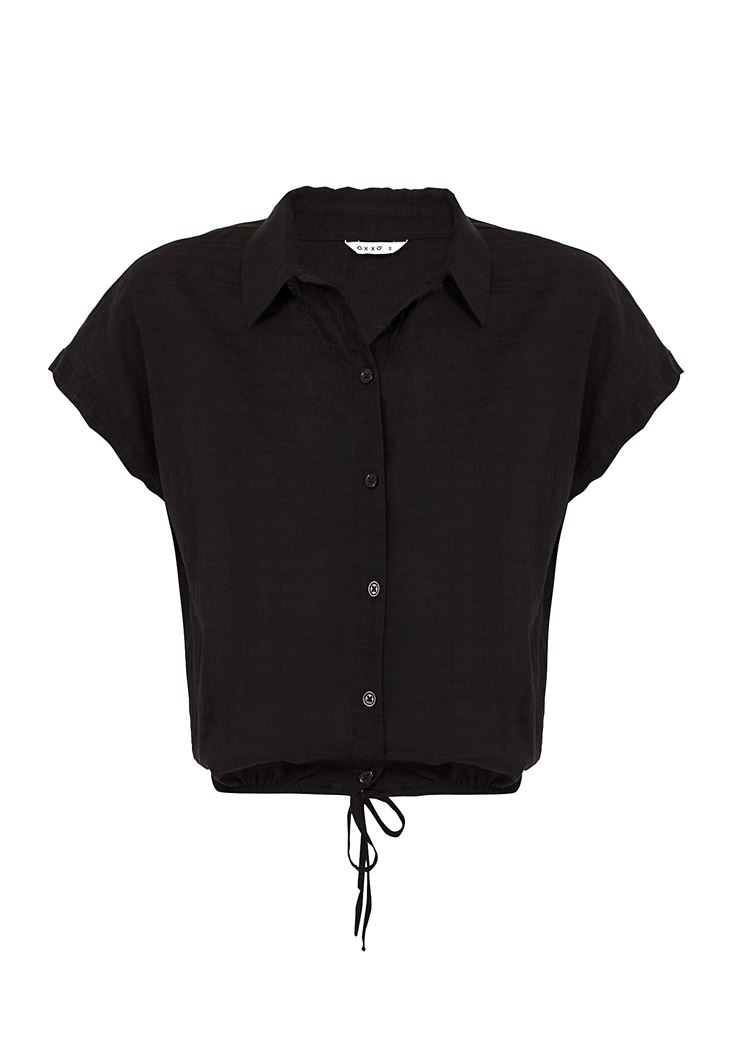 • Bayan Siyah Beli Bağlamalı Crop Gömlek