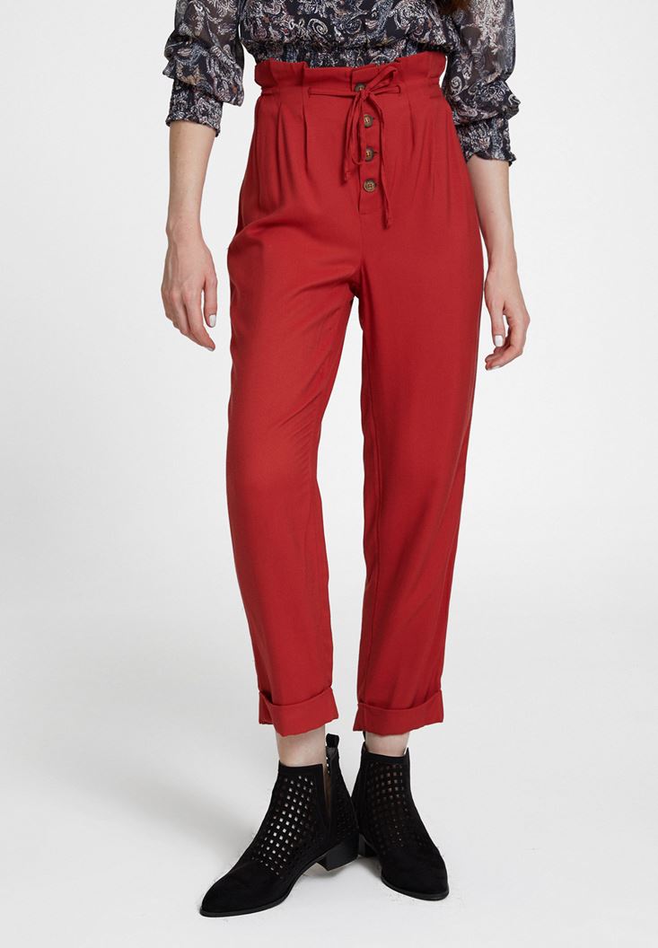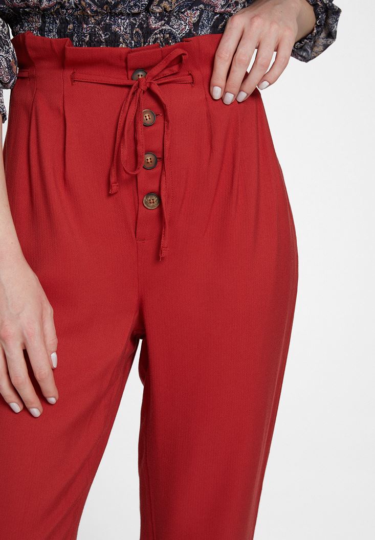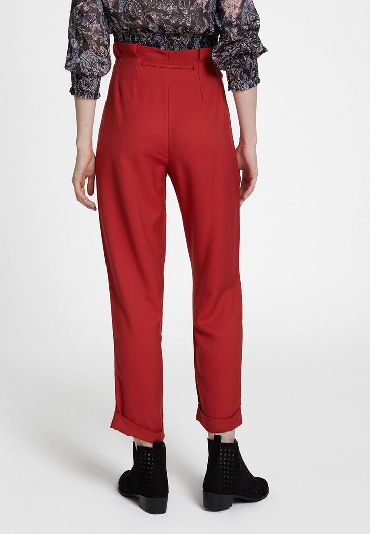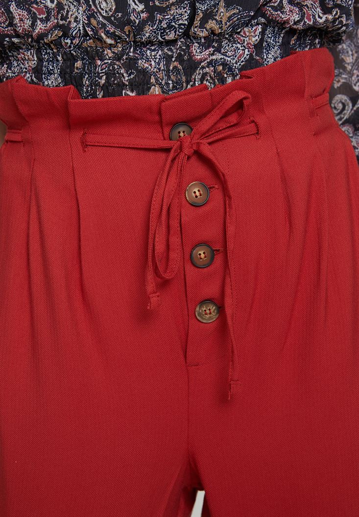 • Bayan Kırmızı Beli Bağlamalı Düğme Detaylı Pantolon