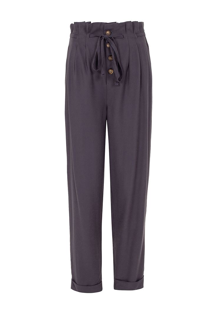 • Bayan Gri Beli Bağlamalı Düğme Detaylı Pantolon