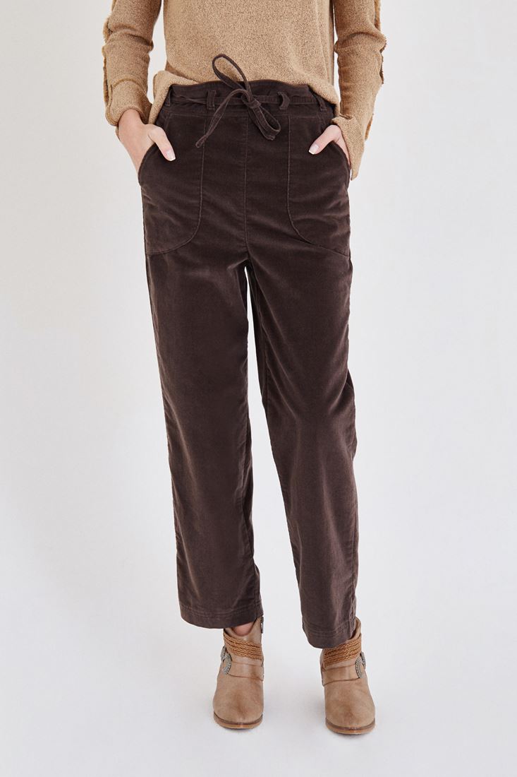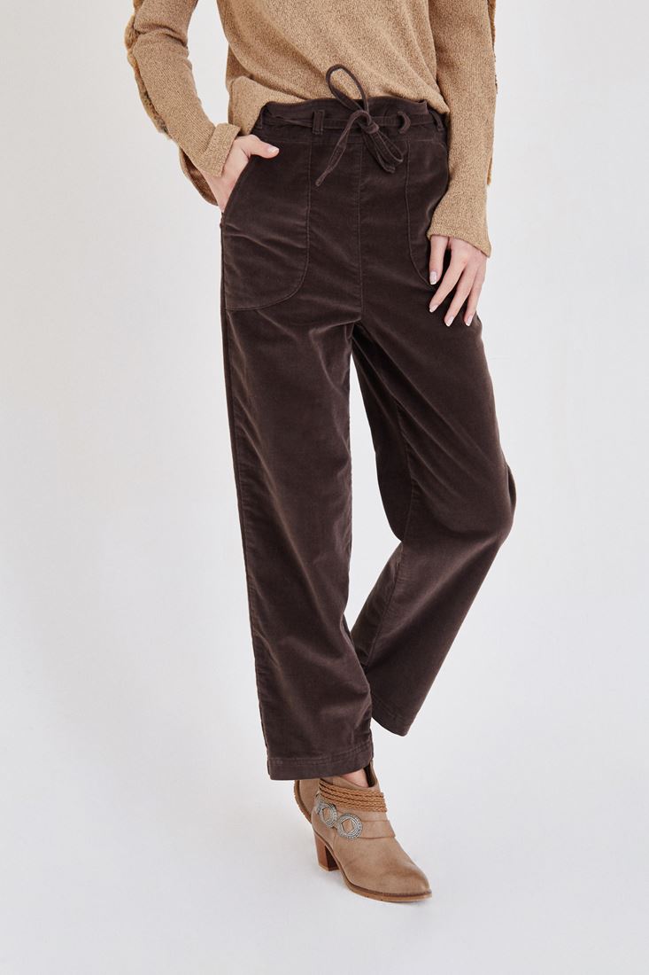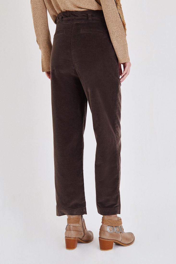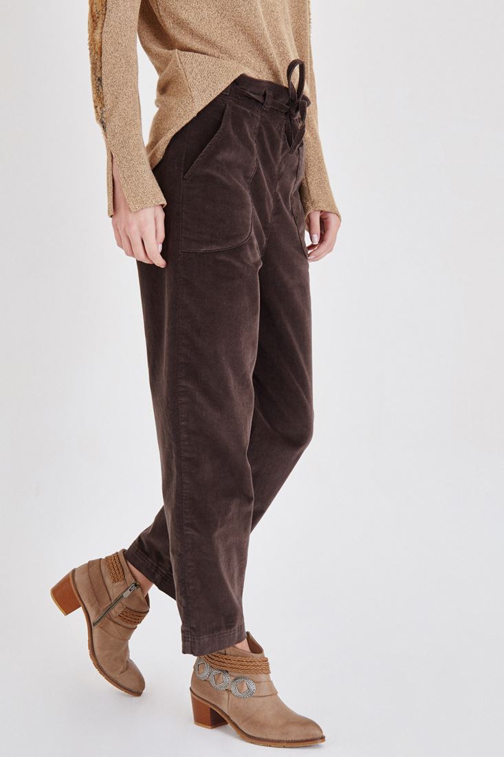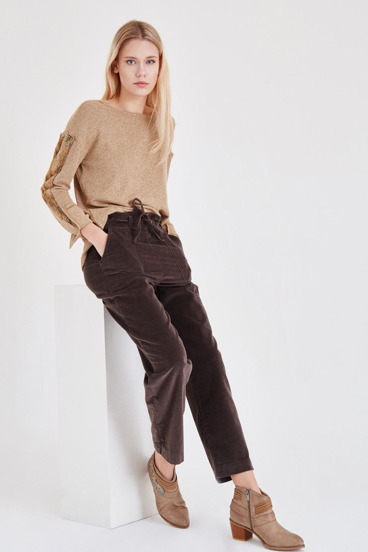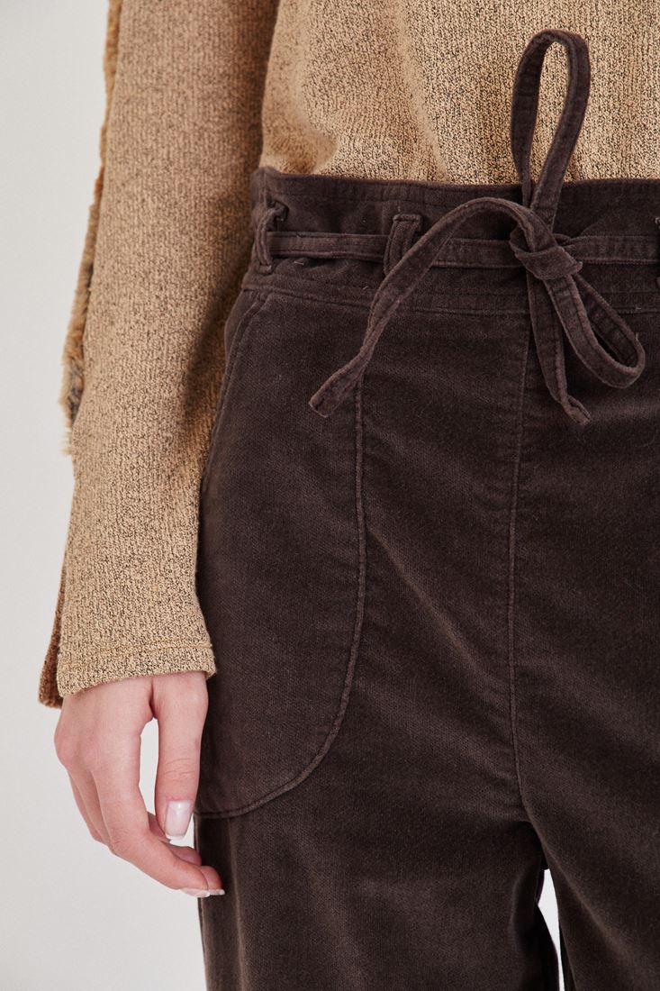 • Bayan Kahverengi Beli Bağlamalı Kadife Pantolon