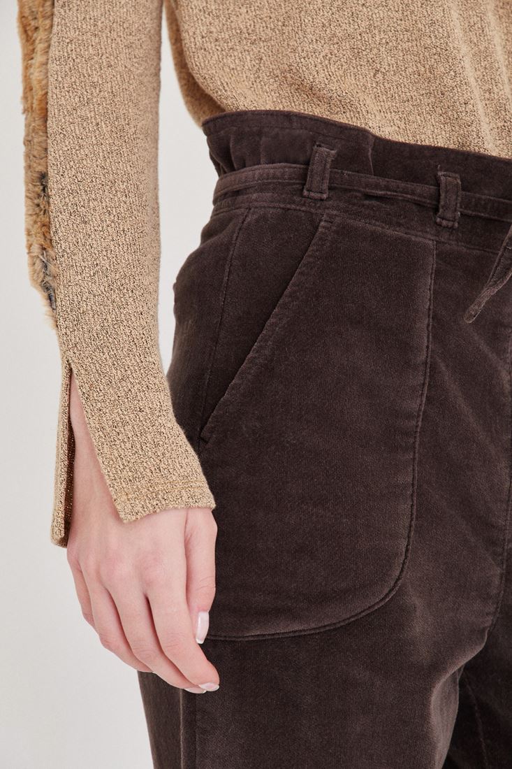 Beli bağlamalı, kısa paçalı kadife pantolon