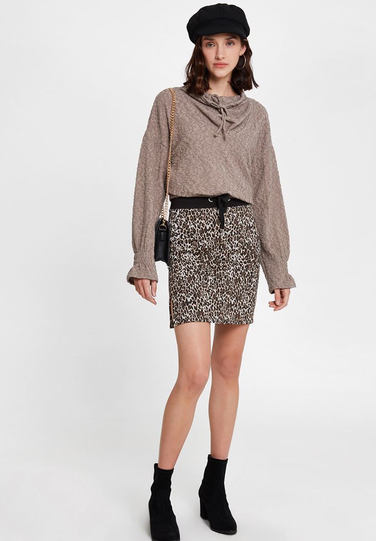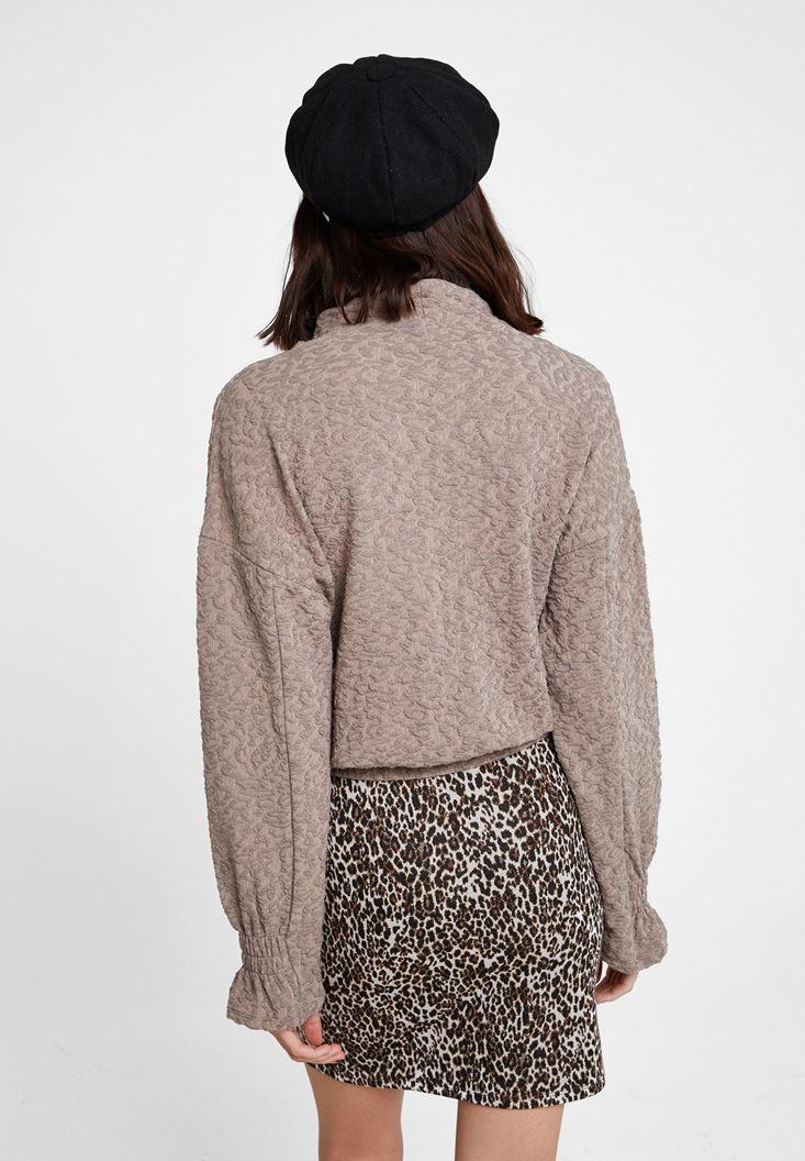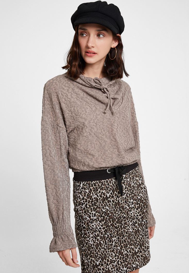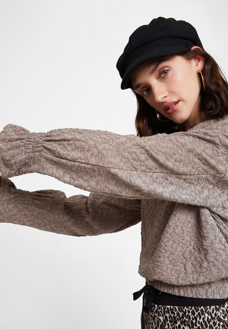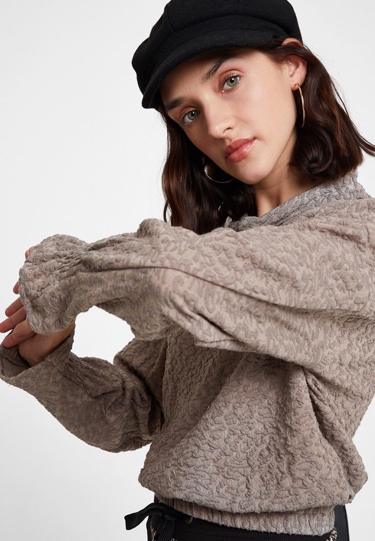 Bej Beli Büzgü Detaylı Sweatshirt