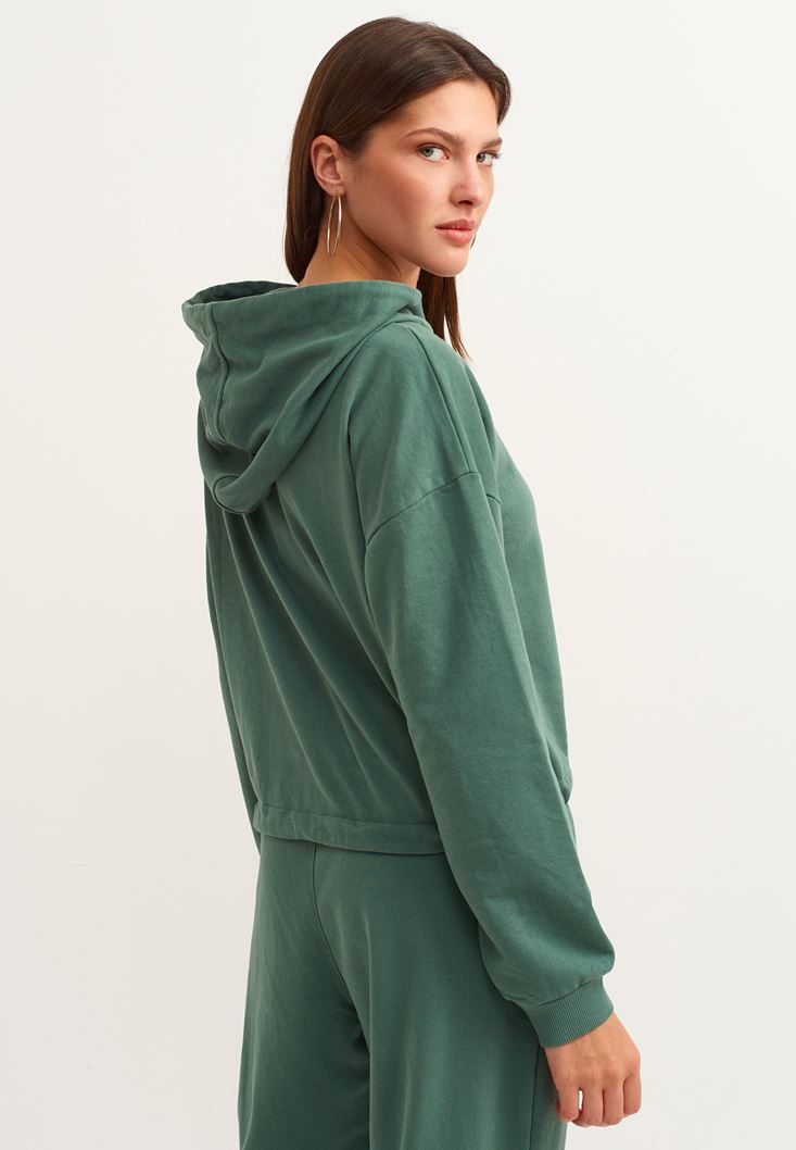• Bayan Yeşil Beli Büzgülü Crop Sweatshirt
