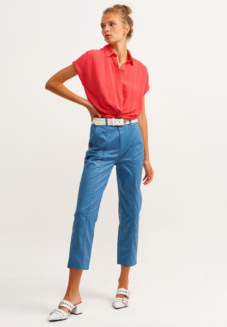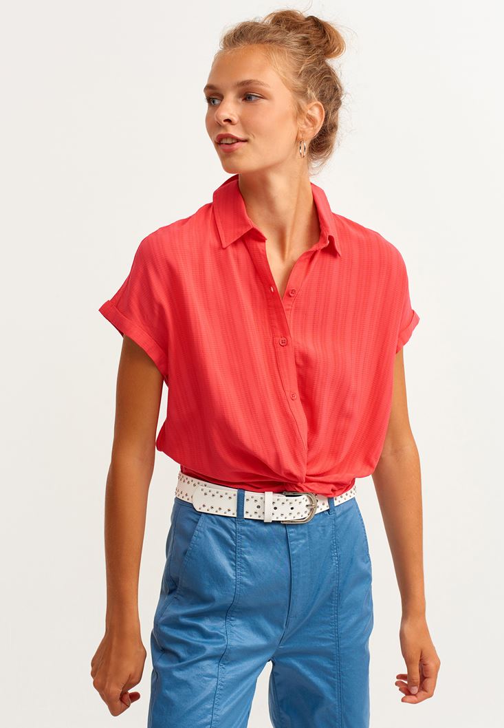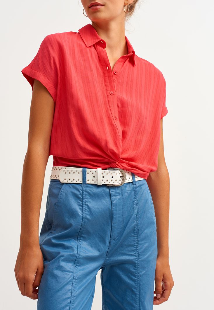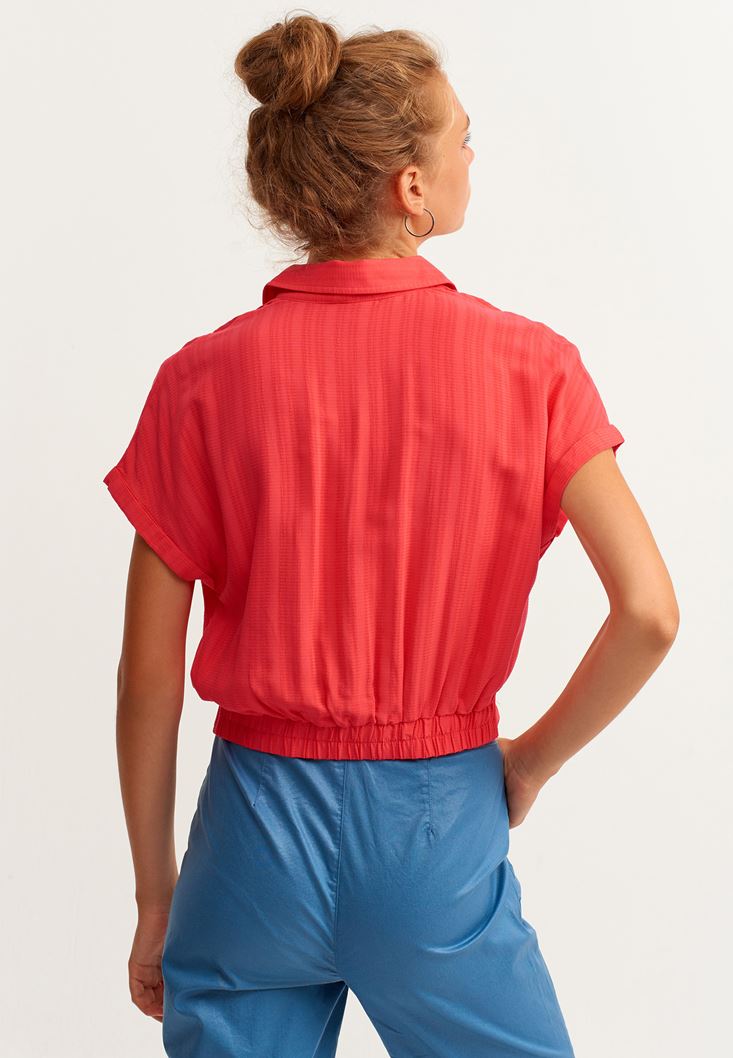 Kırmızı Beli Büzgülü Gömlek