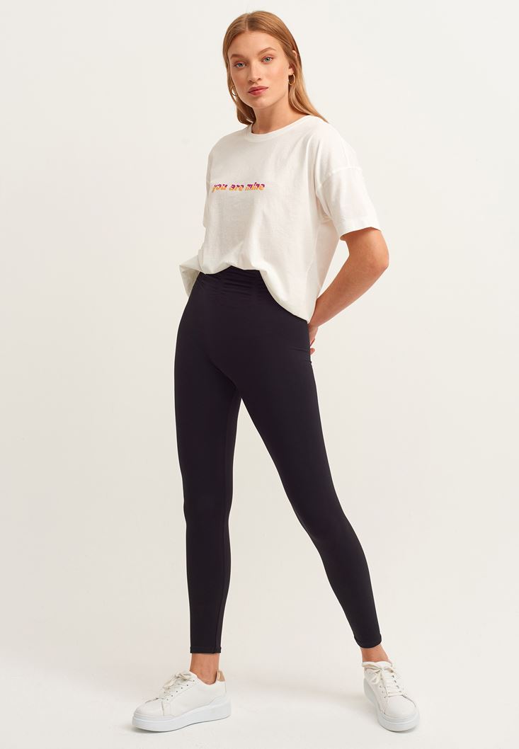 • Bayan Siyah Beli Büzgülü Seamless Tayt